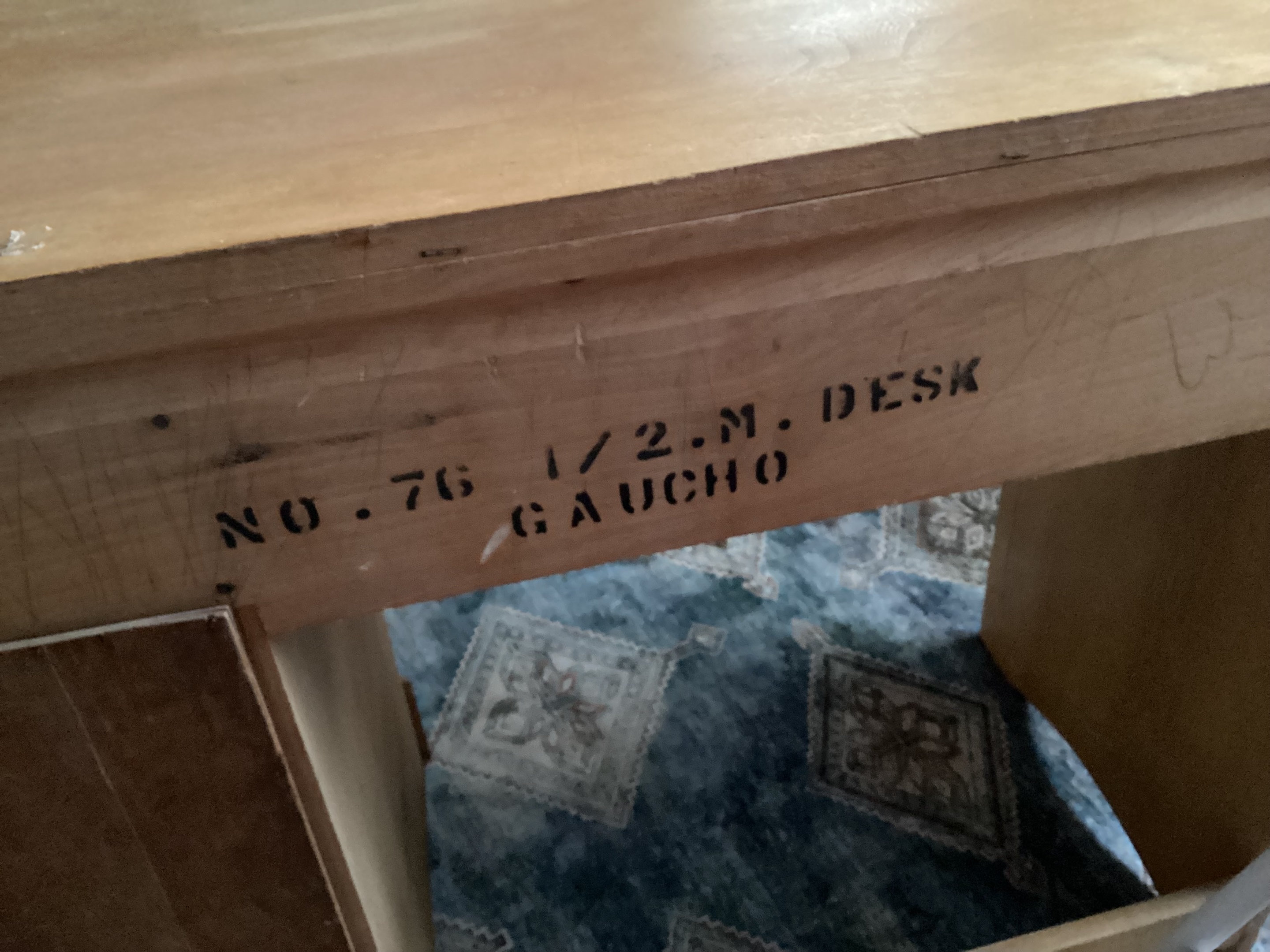 we think this is mid-century modern, but we cannot find anything about this desk. It has a marking on the back that says gaucho series I would appreciate any information you have even a guess is better than nothing. Thanks in advance.