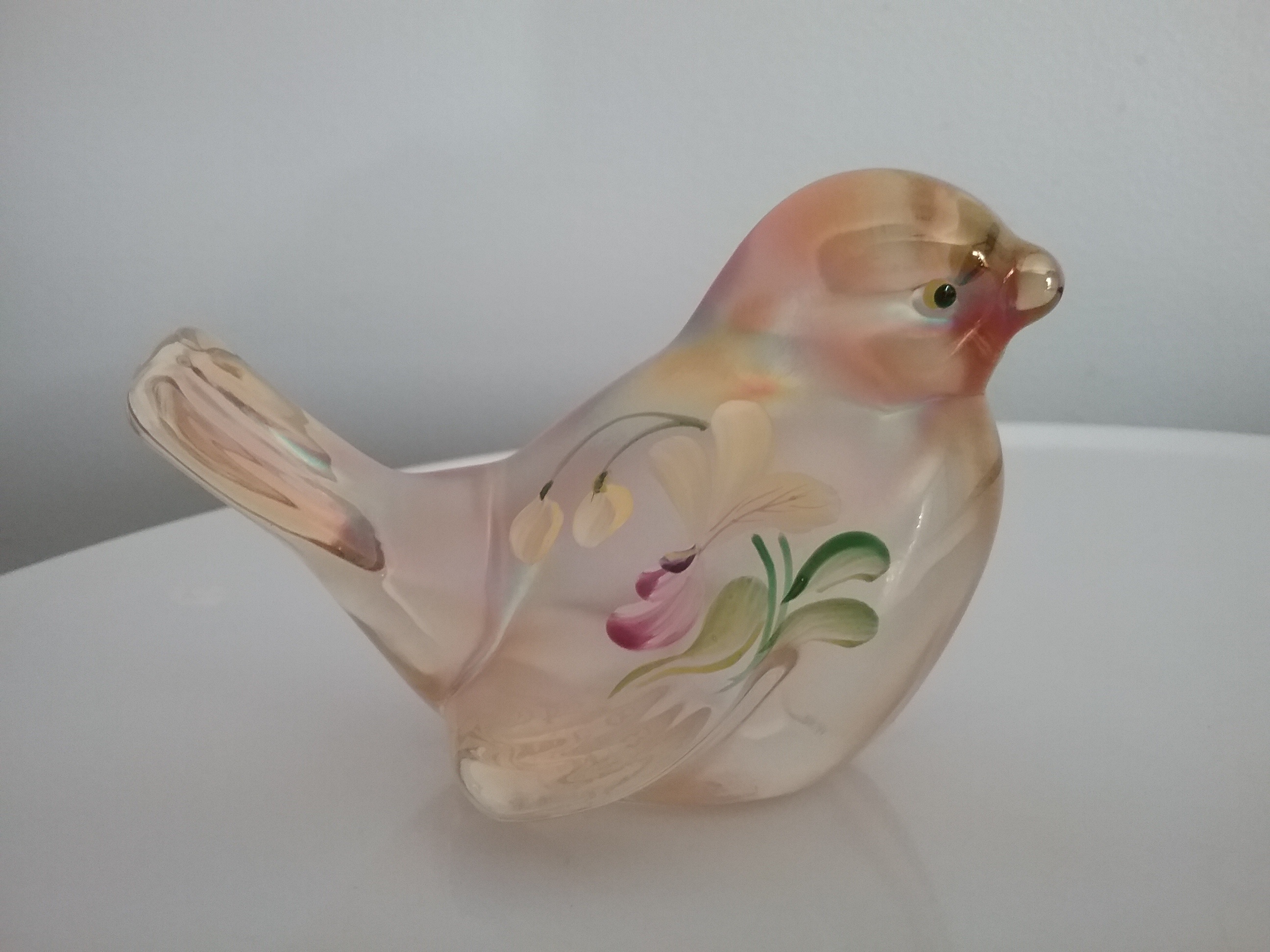 Tilted thanks so much for your wonderful comment, this is quite a special Fenton bird with his delicate coloring, and peach glass is so rare