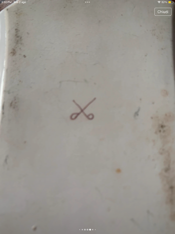 What makes me curious is the mark on the bottom: it features a pair of crossed swords in red, with slightly curled or looped tips. From what I’ve read, it looks inspired by the Meissen mark, but I’m aware that many factories have imitated that over the years.