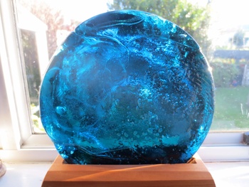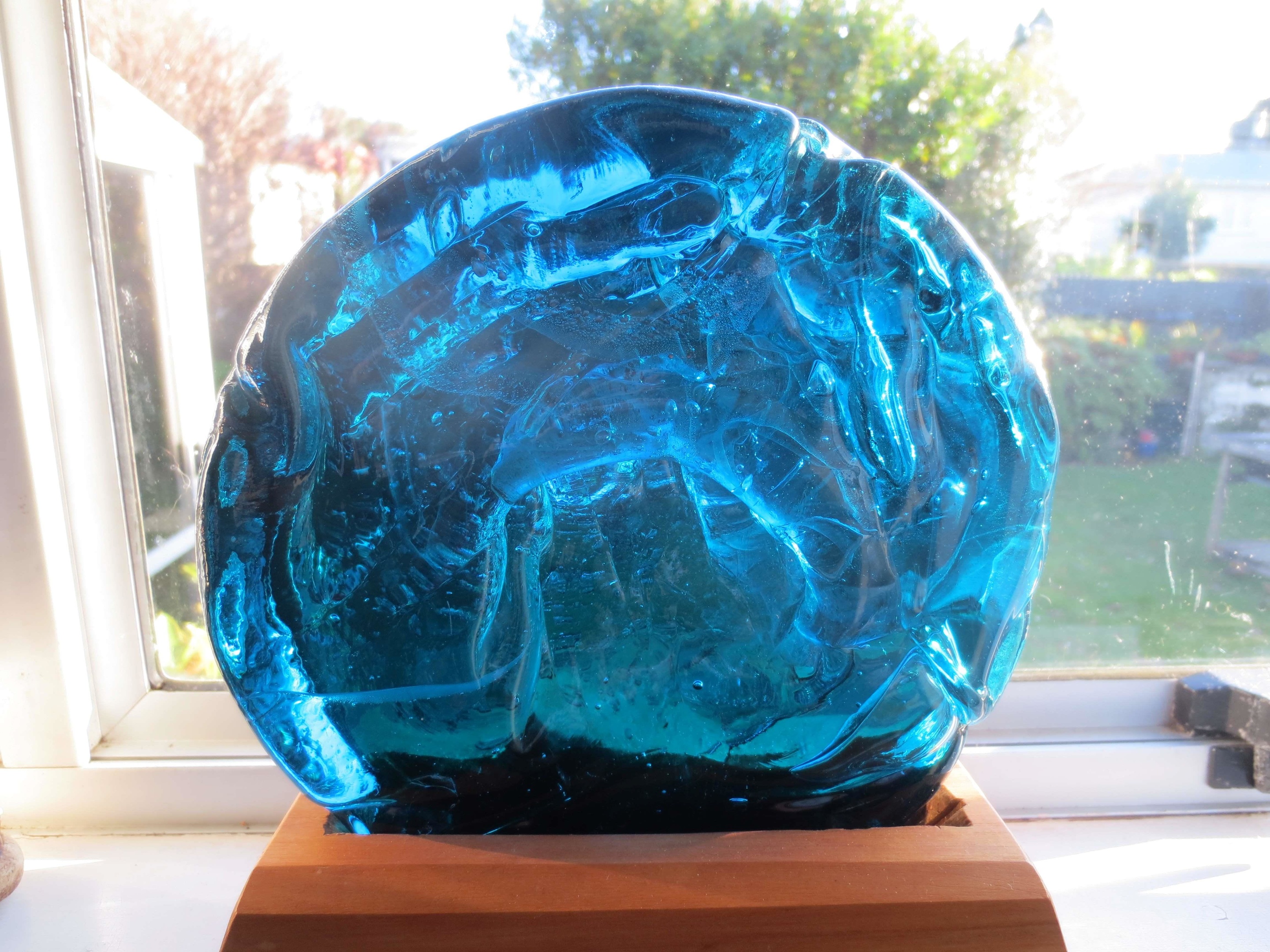 On the last day the dregs from the furnace were emptied into a mould and the cobalt blue slab pictured was produced.