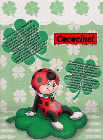 I found this page from a magazine that talks about Cococinel's magic clover: