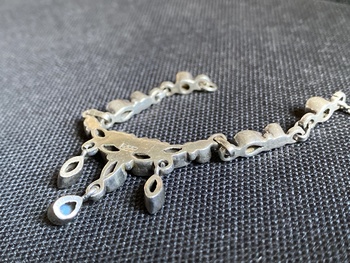 Hello I’ve just rediscovered this lovely part of a necklace that is very similar to one I posted before, I found about 3 of these over the years looking for stuff, I wondered if the chain was gold and that’s why it looks clipped off, can’t think of any over reason, no idea where it’s from or how old it is, but looks very old