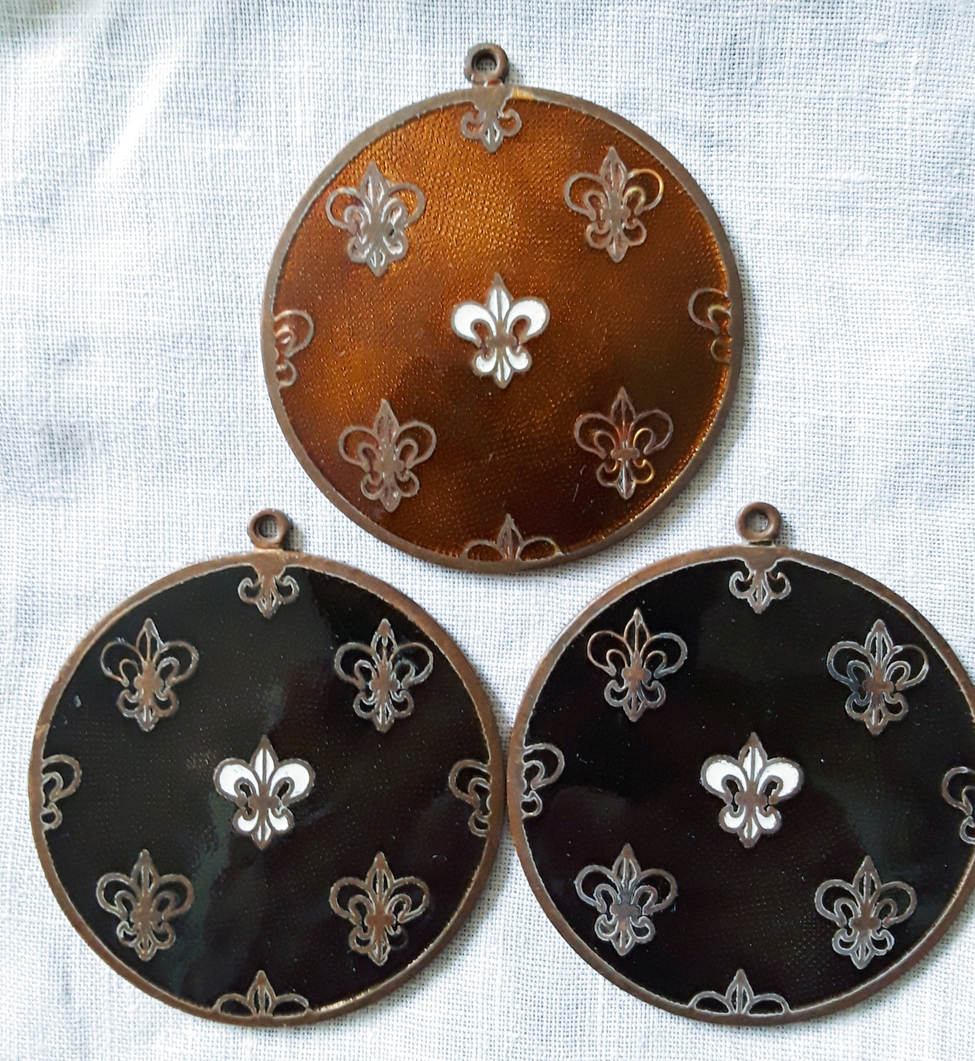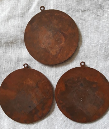 I found these 3 at an antique shop. They don't look like the average pendant, as the outer sides feel a little rough, and they have copper backs. Has anyone seen another use for these?
