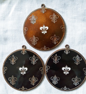 Vintage Guilloche Fleur de Lis Necklace Pendants | ||