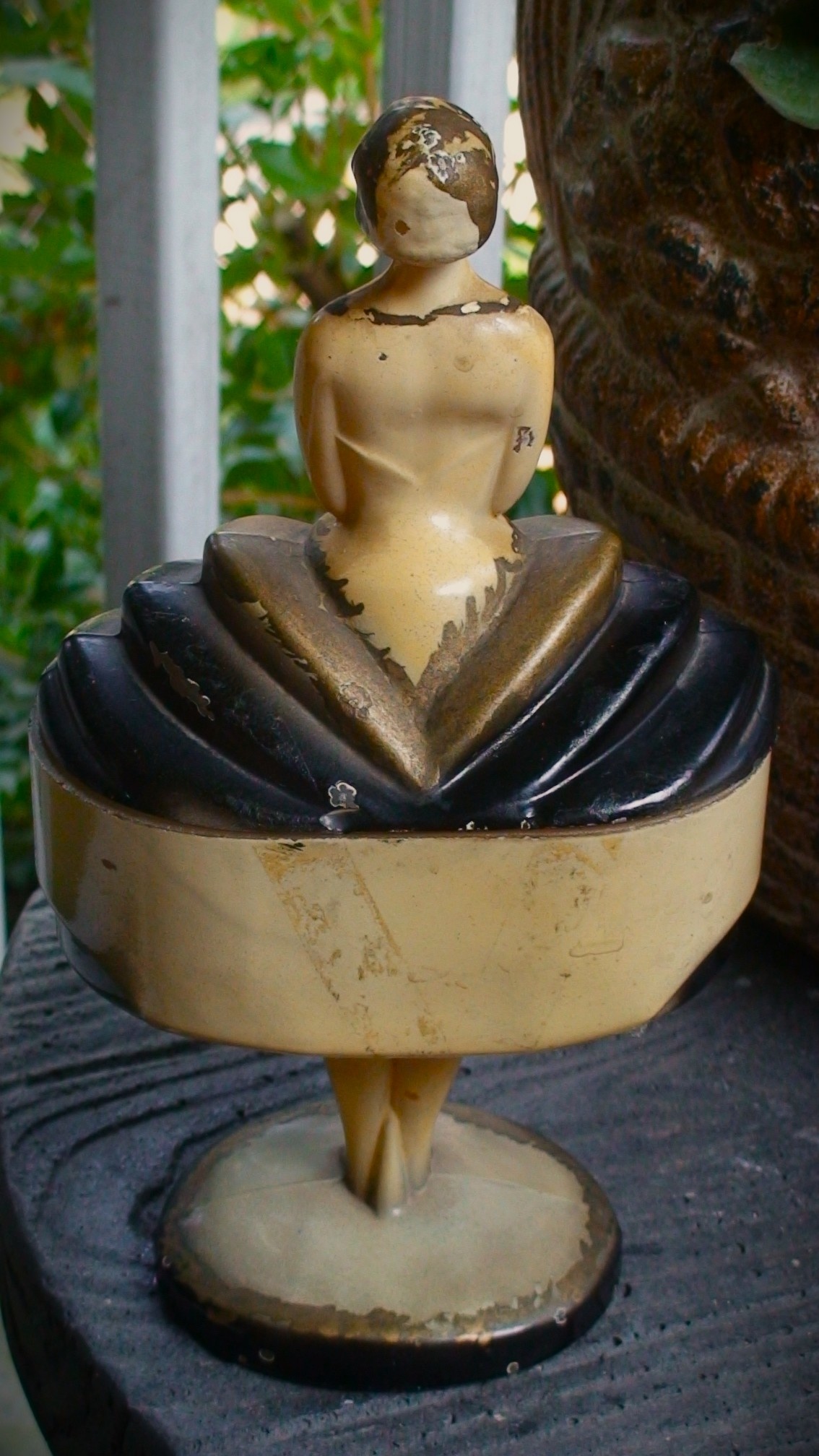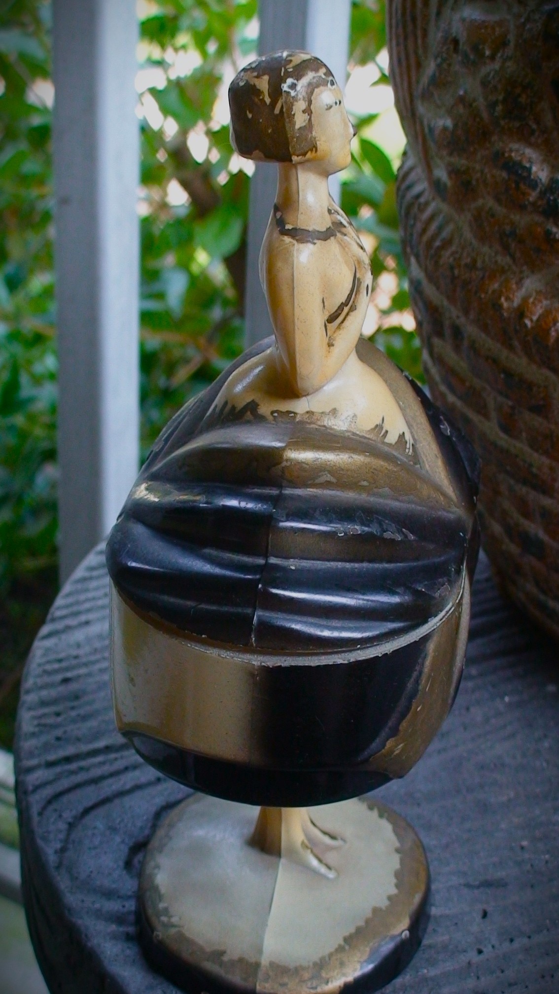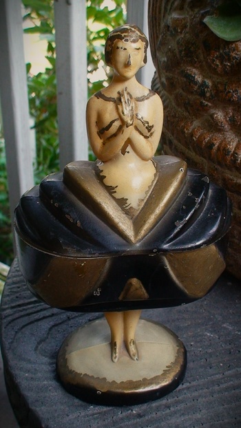 I don't know what it is about this powder jar, but I really like it even though it is quite beat up. It screams the "Art -Deco" period to