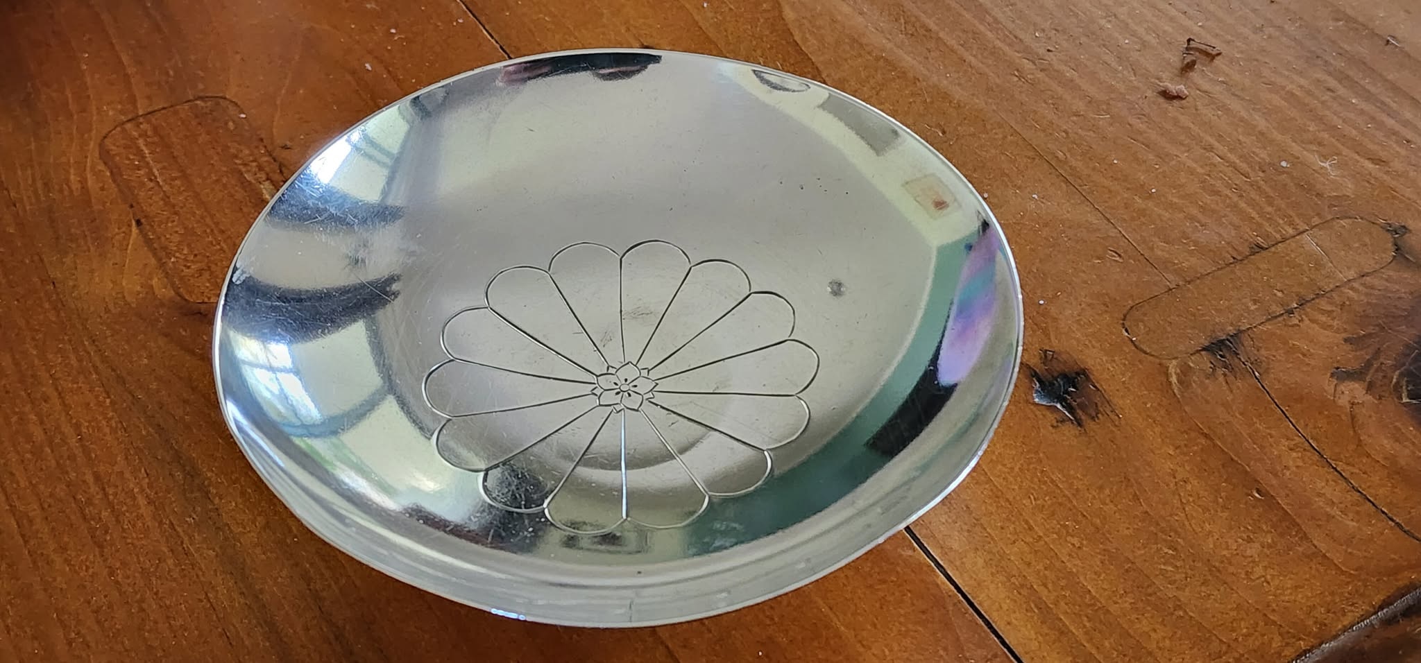 I have this very pretty, simple Japanese trinket dish. I understand the Japanese characters say that it is pure silver. However, I'd love to know the maker, and the age of the bowl. Can anyone assist me? Thank you.