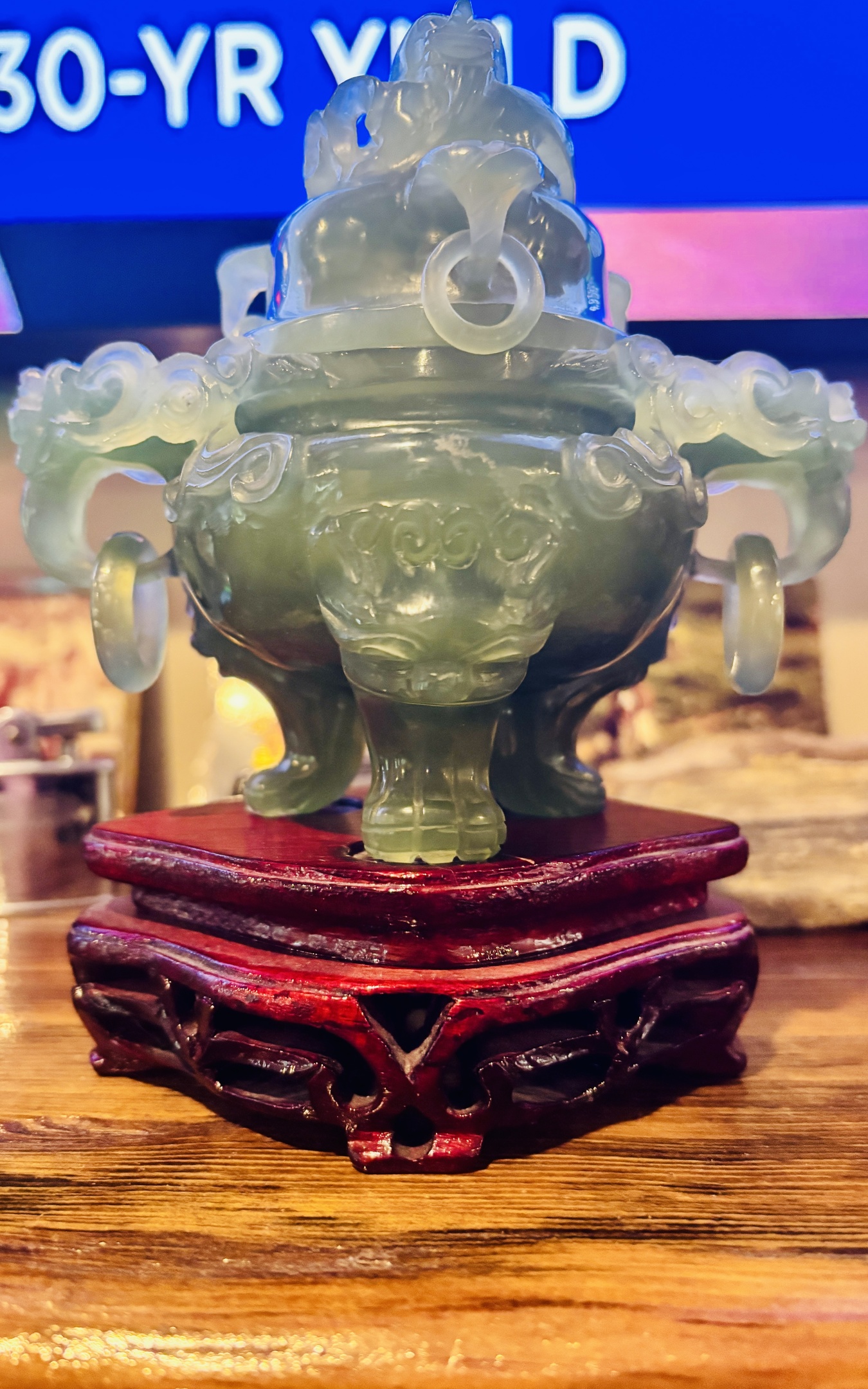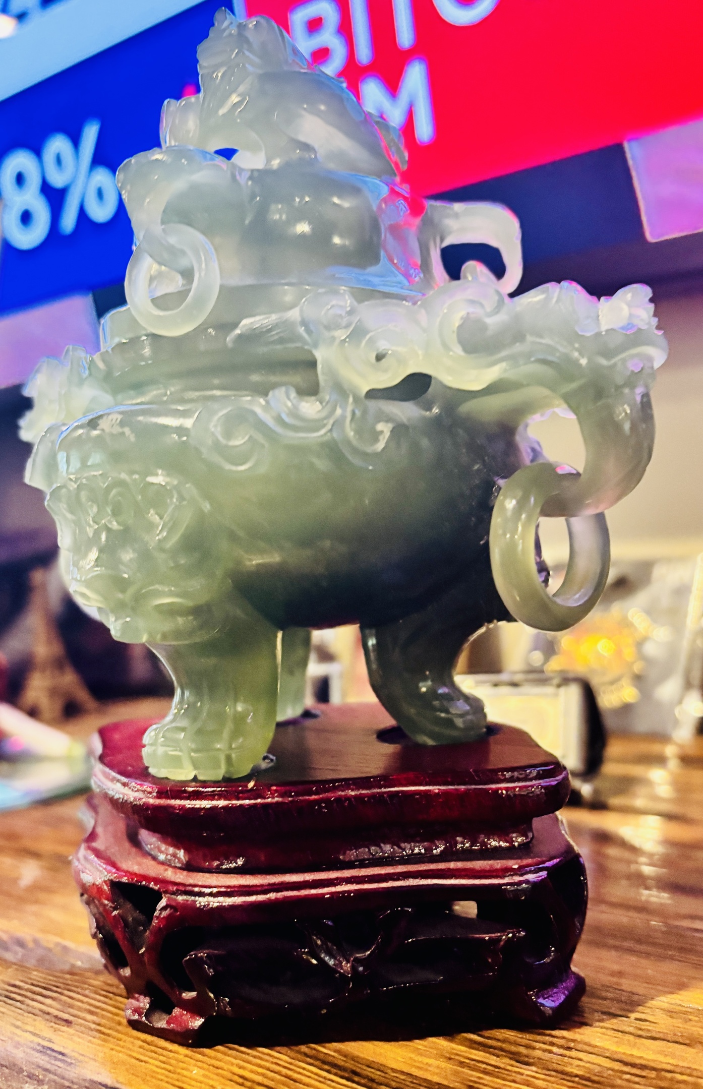 This is awesome. Intricate carving , no chips . Needs a little cleaning I guess. Not any kind of markings on it . How would one go about dating it? Appraisal ? Always interested in your comments . Enjoy .
