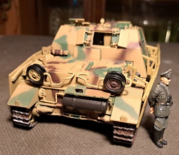 This model has opening hatches, removable side skirts, moveable tracks and many fine details along with 2 German soldiers which are nice for showing scale. The model was originally released in 2005.