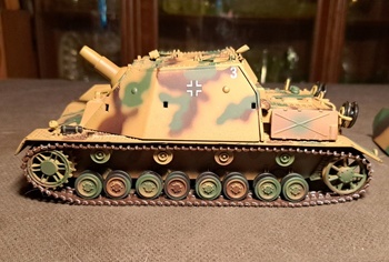 The Sturmpanzer (unofficial Brummbar, may have been from a model company) was built on a panzer mk IV chassis. The Mk IV being a moderate sized tank. A superstructure was put on the chassis making it into the size of a motorhome. The idea to put a 150mm short barreled gun which is large for an armored vehicle. It fired a high explosive round that was very high explosive. The shorter the barrel the more high explosive the round could be due to the friction caused by the barrel. But then accuracy decreased with a short barrel. Thus a highly armored vehicle to blow up bunkers and such.
