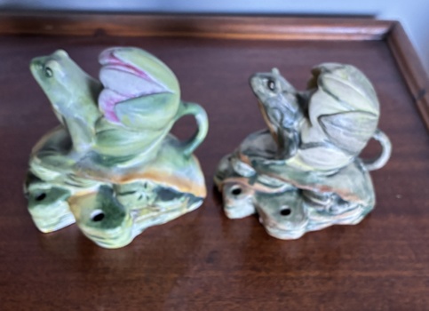 I am posting a Weller Muskota frog reproduction from Japan because I've not been able to find anything about this piece. Anyone know about it? I posted a photo together (it is quite good) and the markings under each to authenticate each.