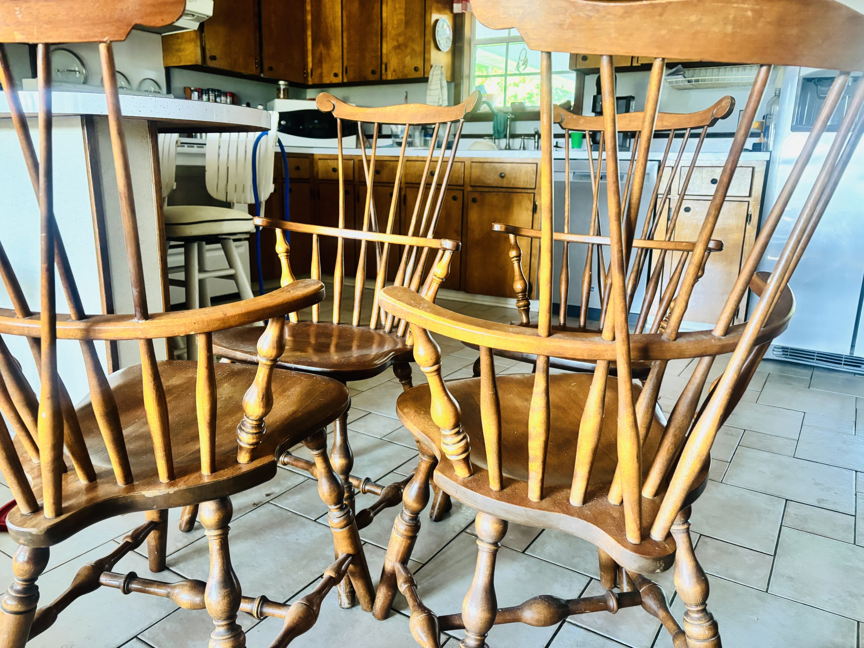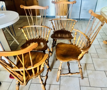 Love these . Some wear and tear but sturdy , use daily , sit comfortable. Set of 4 . Love this site . Thanks .