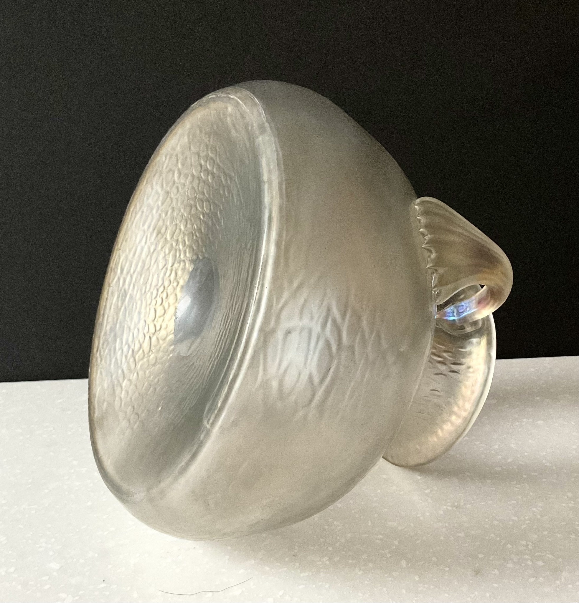 It has a lovely gold/rainbow iridescence over a clear body that can just be seen in the photos.