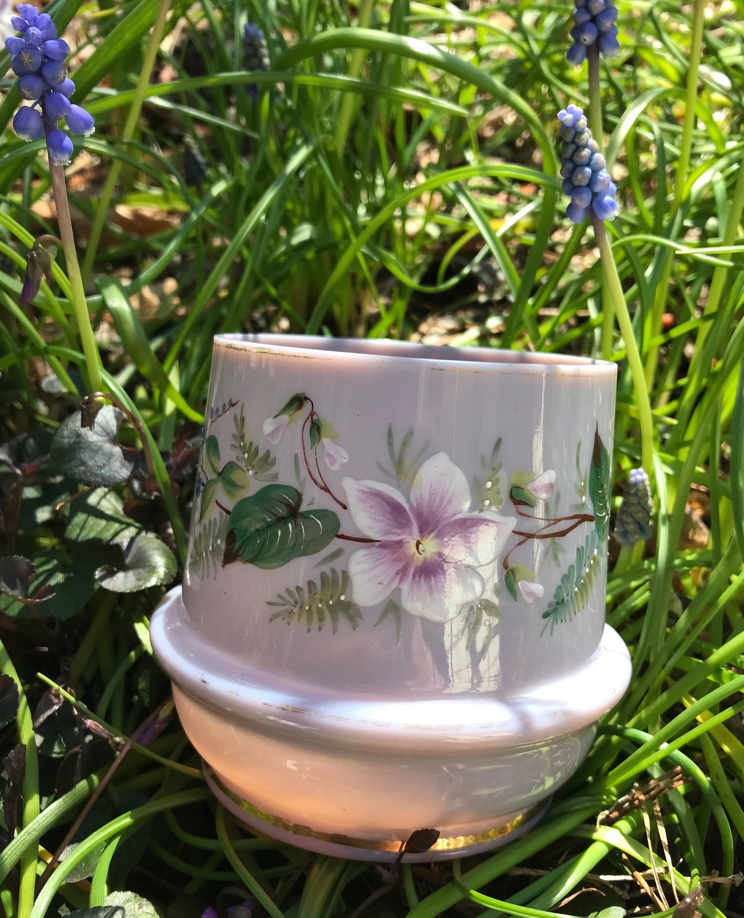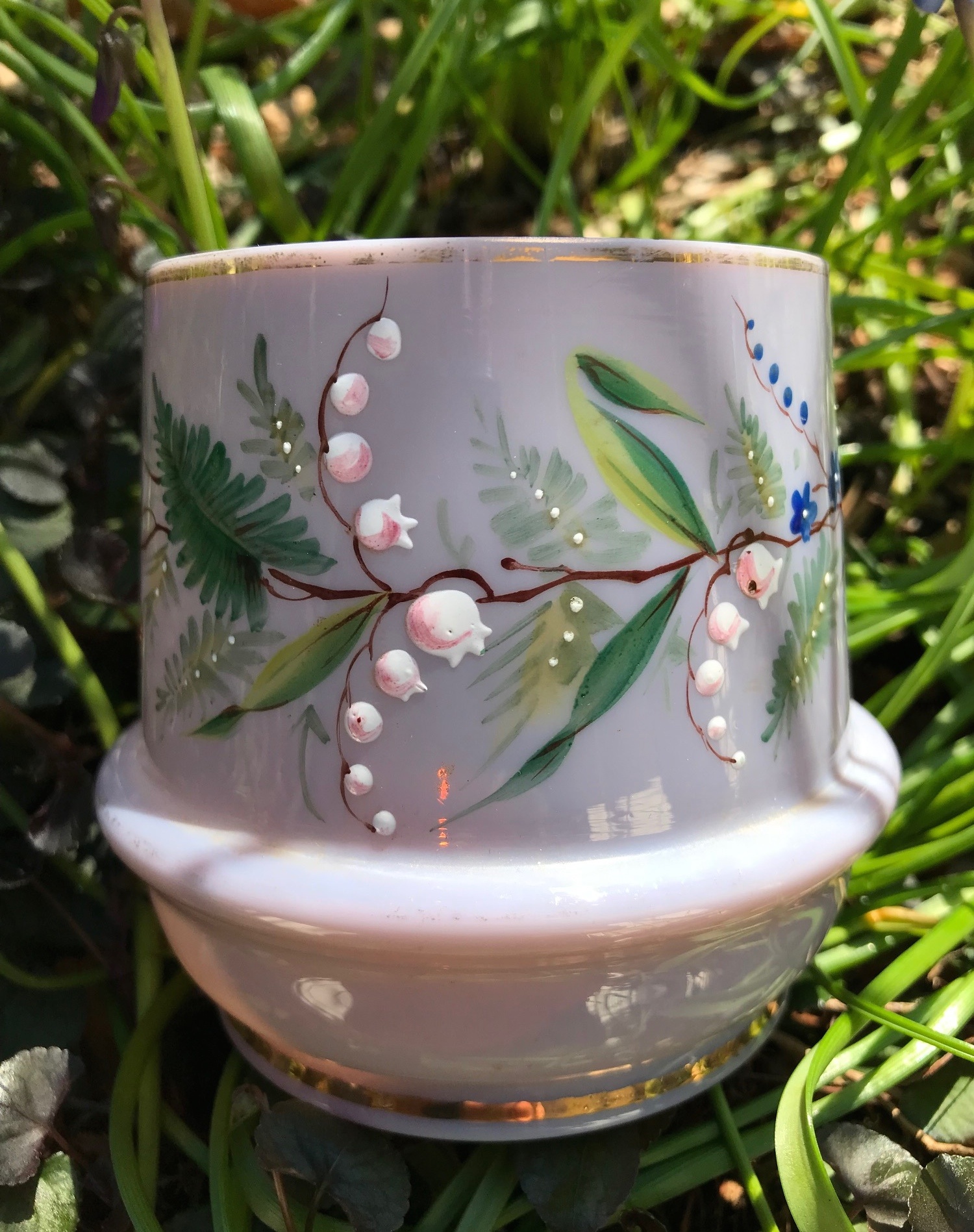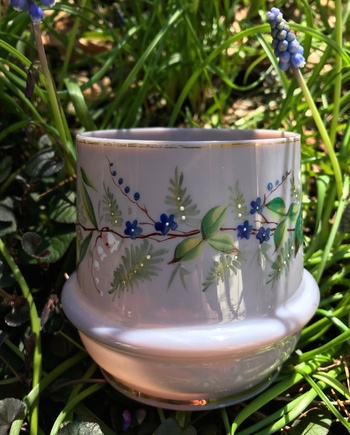Here's charming piece of Victorian era opaline glass in a very rare & attractive shade of mauve. I must admit I've been super keen to find an example of mauve opaline glass for a while now, so when this popped up on eBay AU I was onto it right away.