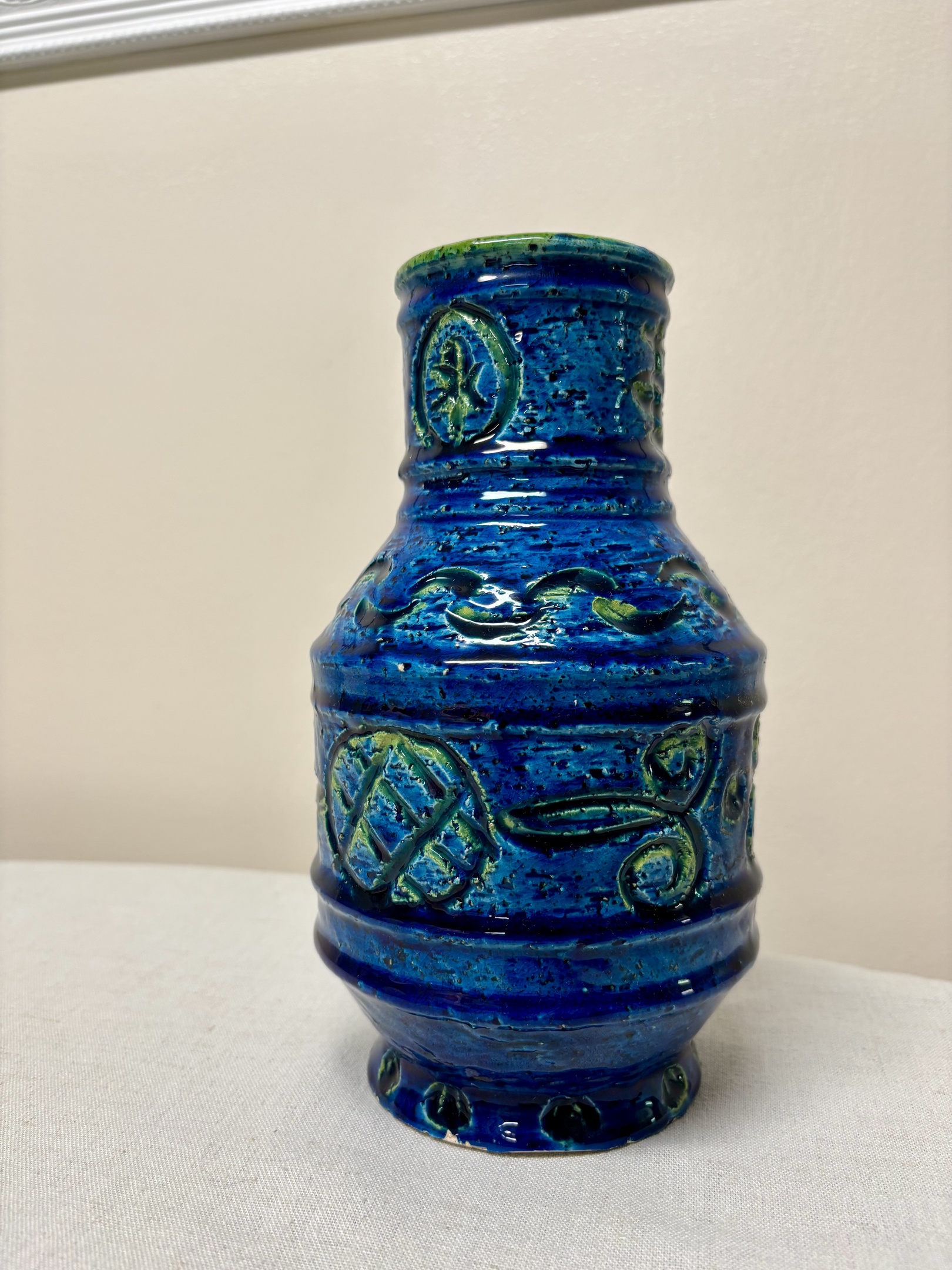 Found this pretty vase that I’m hoping is Bitossi. I can’t quite make out the impression on the bottom. It is Italy and I think a series of 4 numbers.