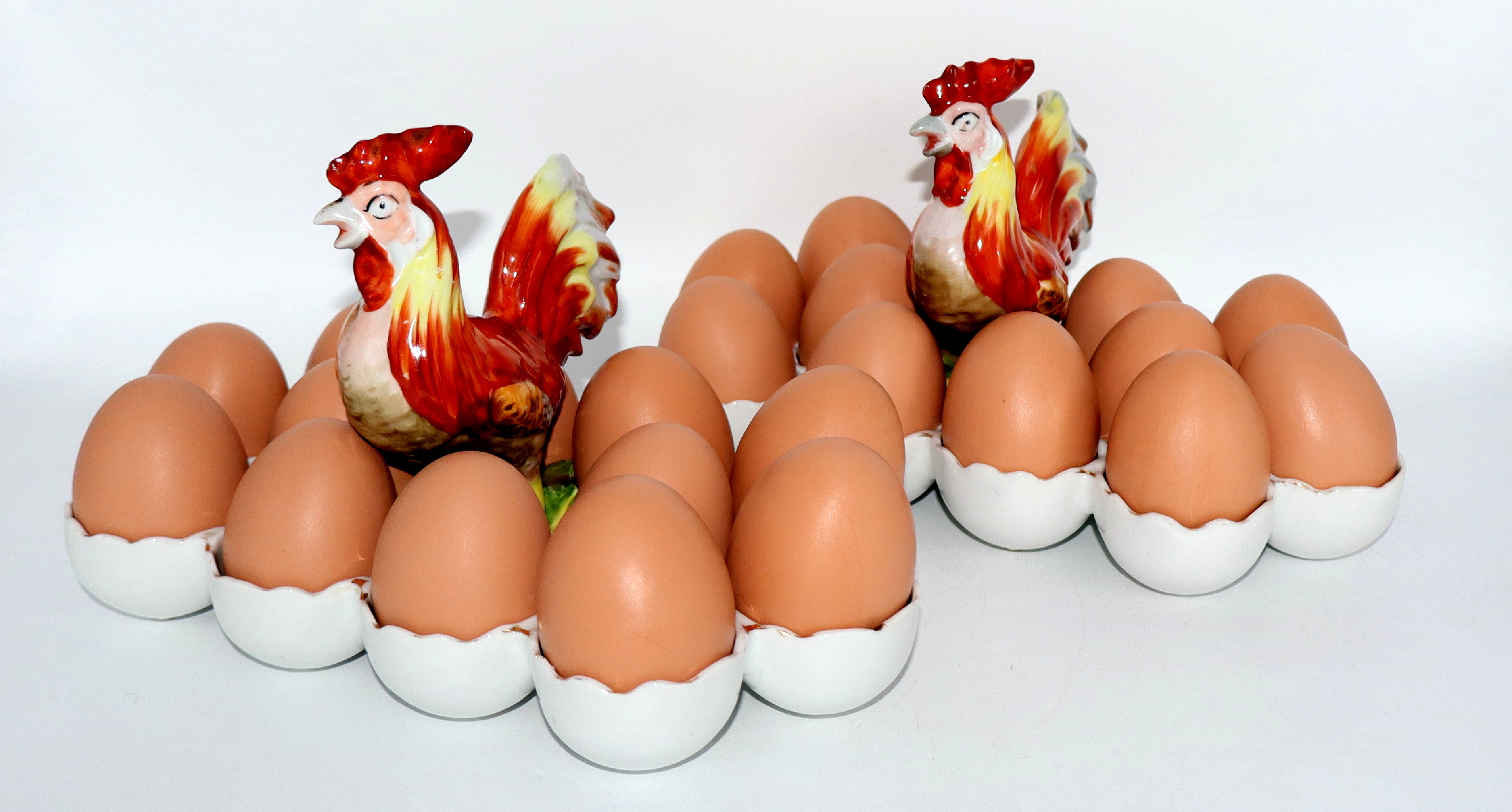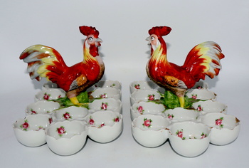 Exceptionally beautiful & colorful rooster and egg cup set, Scott your animal collection is the greatest