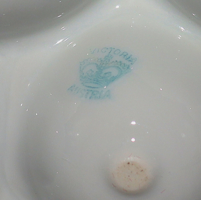 I may have posted these once before, so please forgive me if I have. These have been sitting atop our buffet in our dining room for years now. These are antique porcelain Victoria Karlsbad Austria egg servers. These were made in Austria between 1904 and 1918. These would have been used to serve boiled eggs many years ago. They are marked with the Victoria Karlsbad Austria mark (Pic #4) and that particular mark was used between 1904 and 1918. The Victoria Karlsbad Austria company produced porcelain wares from 1891 thru 1918. There are a couple small chips on one of these, but the other is wonderful condition. These each measure 10" long. 5" deep and 5 1/2" tall. I added the ceramic eggs to demonstrate how these would have been utilized. I'm very fortunate to have two of these in my collection.