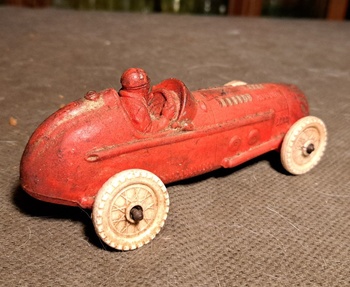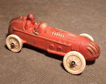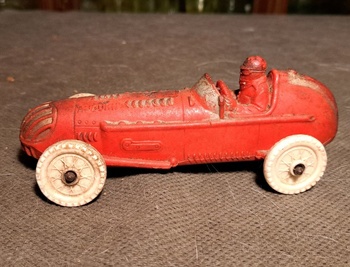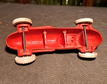Making a another try at a post after the 1st one worked. I covered everything in the title but I will cover it again. It is a rubber race car made in the 1950s. I think it is 6" long. . Nope it is 5 1/2" long.