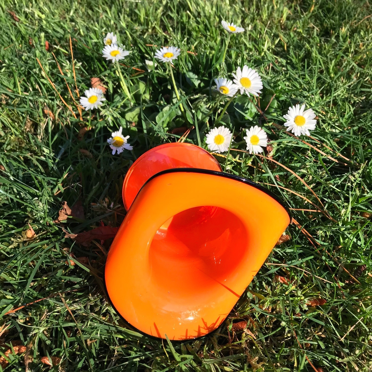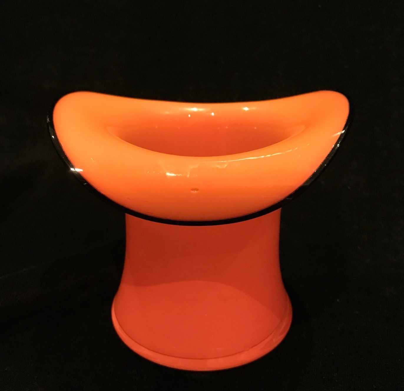 I think this is most likely the coolest piece of Tango glass in my collection as of today. Found it as a buy it now on eBay AU, & boy did I hit that buy it button FAST. You see, I'd only ever seen one other Tango top hat, & that was around 30 years ago. It was pink(!) not orange like this one. Being a poor art student, I had to spread my meagre resources very thinly, so having already committed to buying a paperweight, I thought I'd come back another time & get that little pink hat. Of course, someone else more savvy & cashed up than me bagged it in the meantime. The regrets were long lasting...sadly for me I possess an elephantine memory.