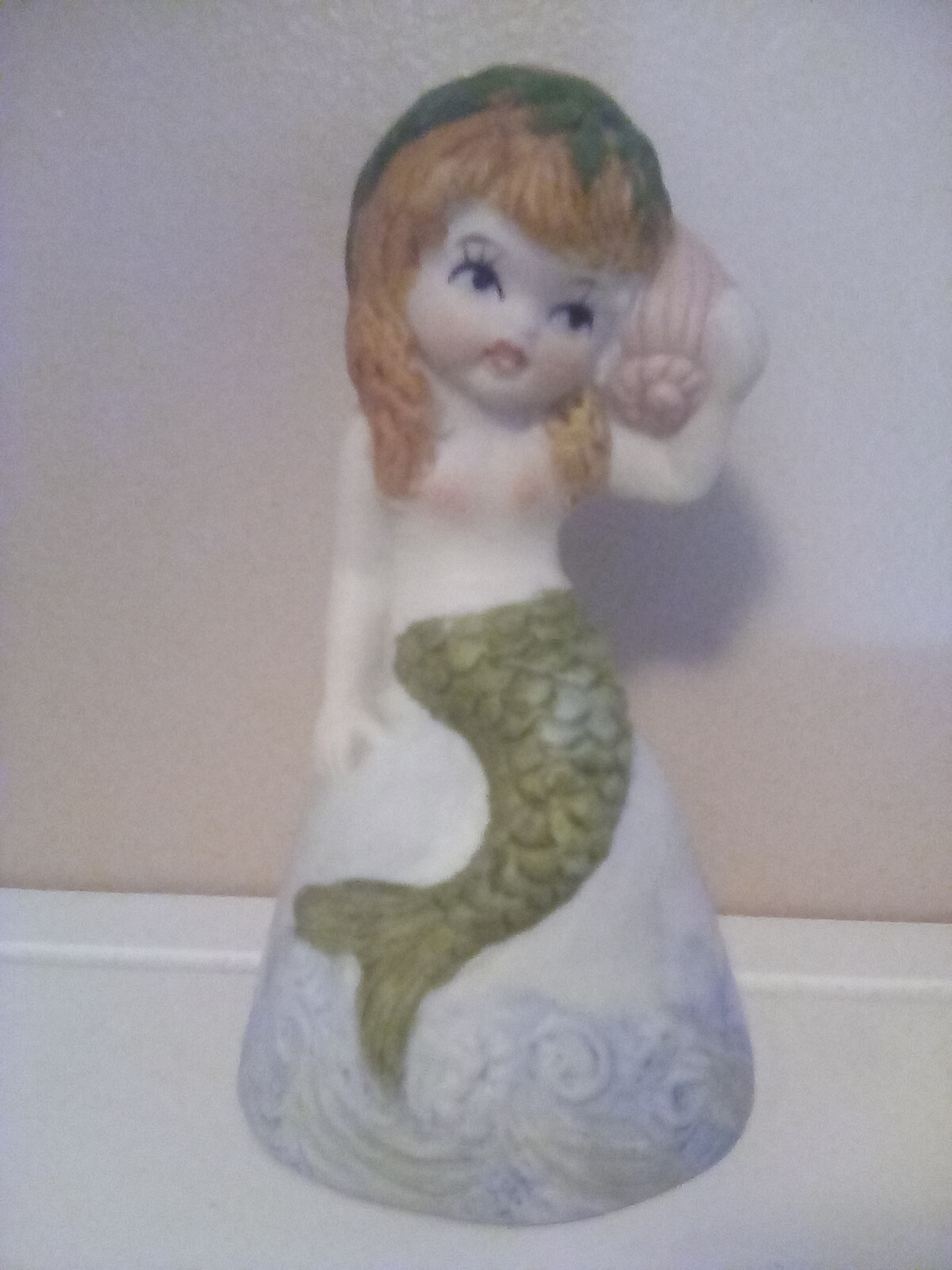 Bisque porcelain mermaid bell, tag says Adorabelles by Jasco 1979. A birthday present to my daughter from her best friend