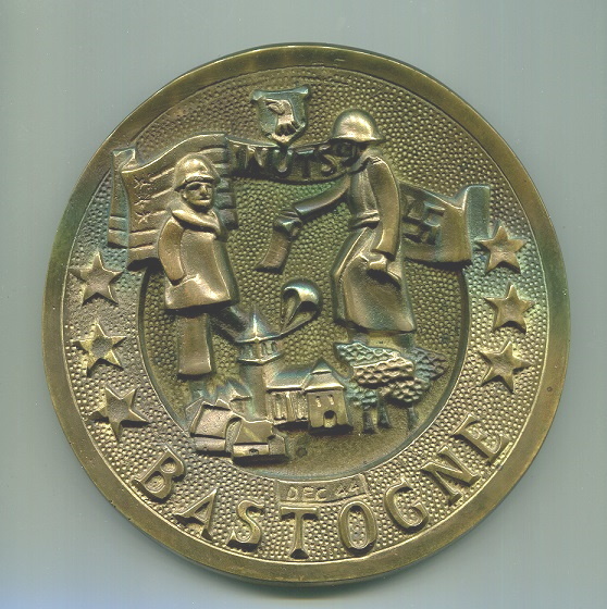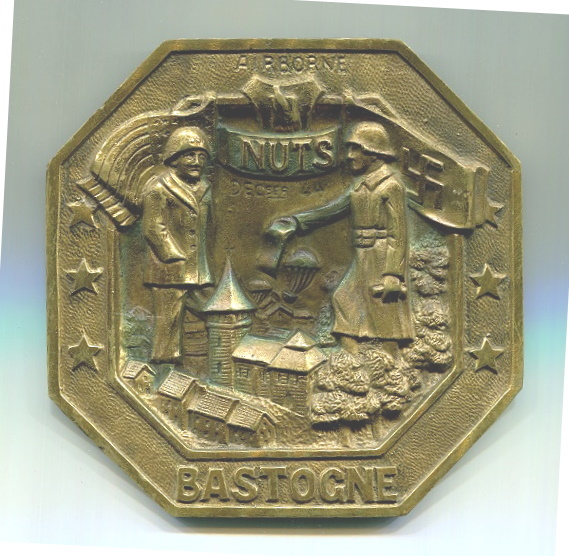 Awesome WW2 Bastogne plaques, a really great find. Excellent depiction of McAuliffe and the "nuts" comment which I've seen in many war films. Your father must have loved these
