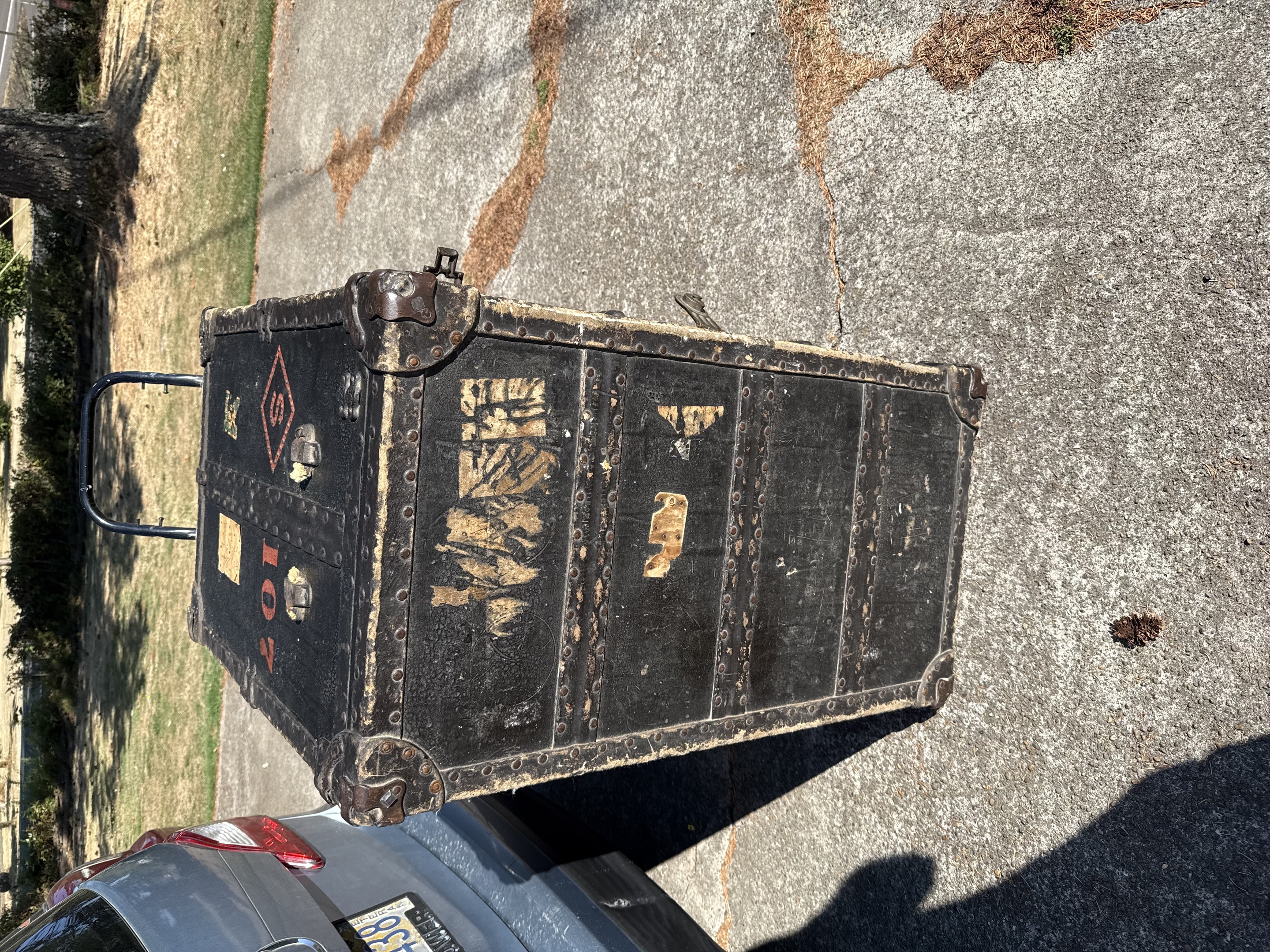 Large trunk with a 5th ave address. Curious if anyone knows what the S and numbers are for? Crouch & Fitzgerald NY L40 x W22 x H33… also has Schulman trunks works decal inside