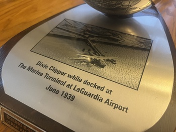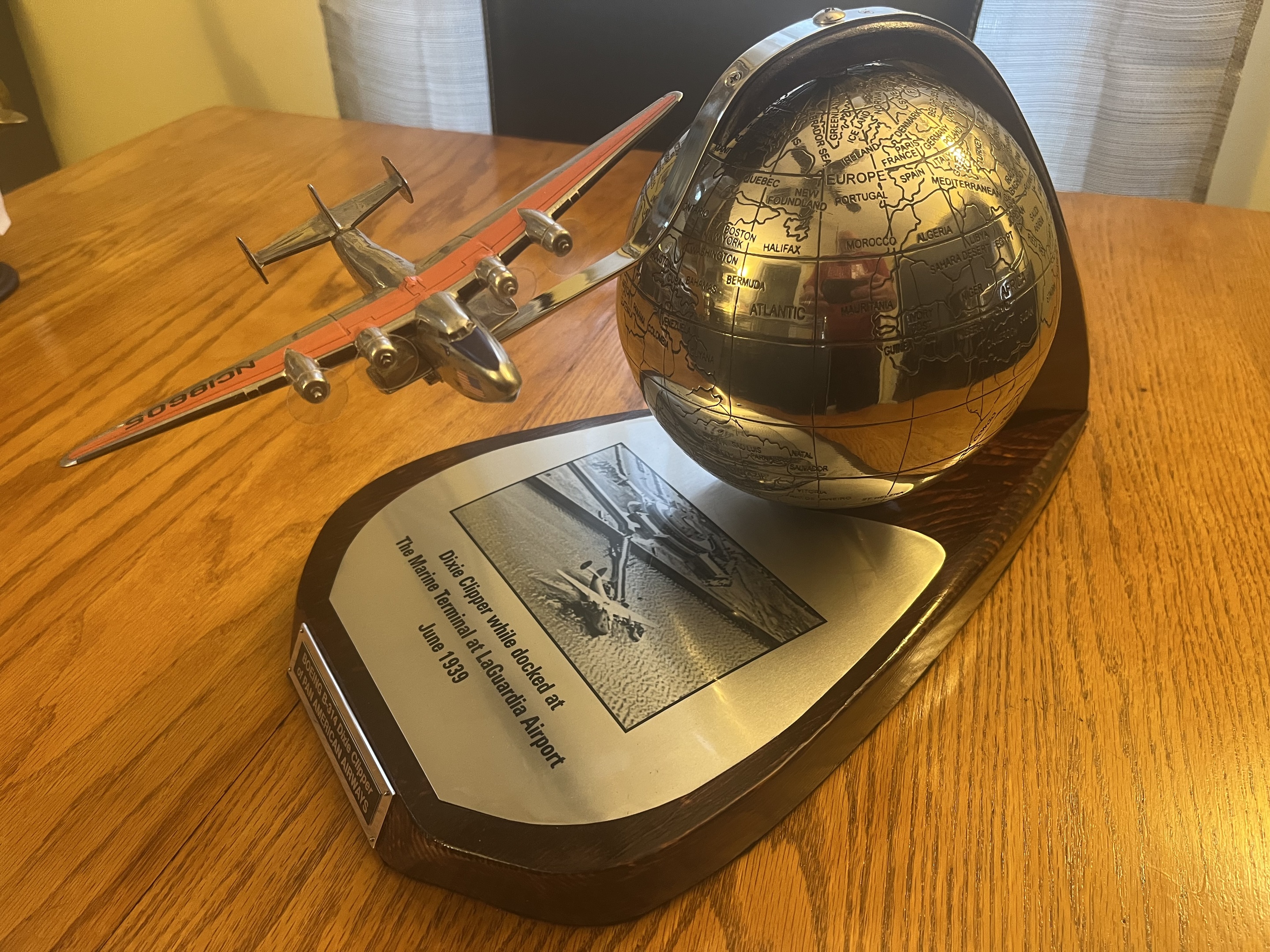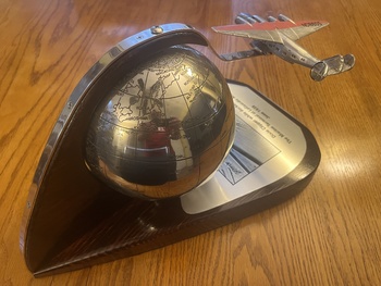 An original Rehberger B-314 Cast Metal Model circa 1940. Usually these were supplied on ashtrays or clocks but a select few were mounted on other marketing items. This one was adapted for a travel agency window display or corporate boardroom display.