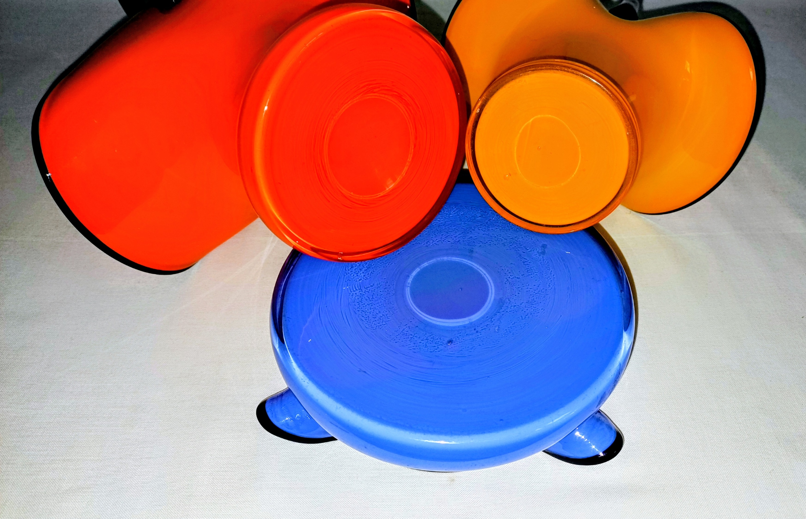 I was having a change around and happened to handle these at much the same time. I noticed they all had the same ground and polished treatment of the pontil scar. In fact it was the first time I'd noticed this, which is not usual for Tango Glass. This type of treatment is usually seen from the better quality makers though I've no idea who made these or even if they share a maker.