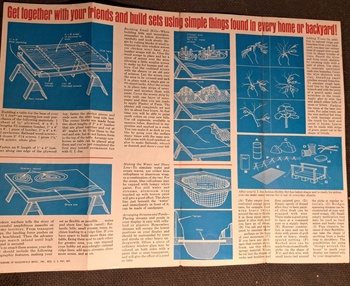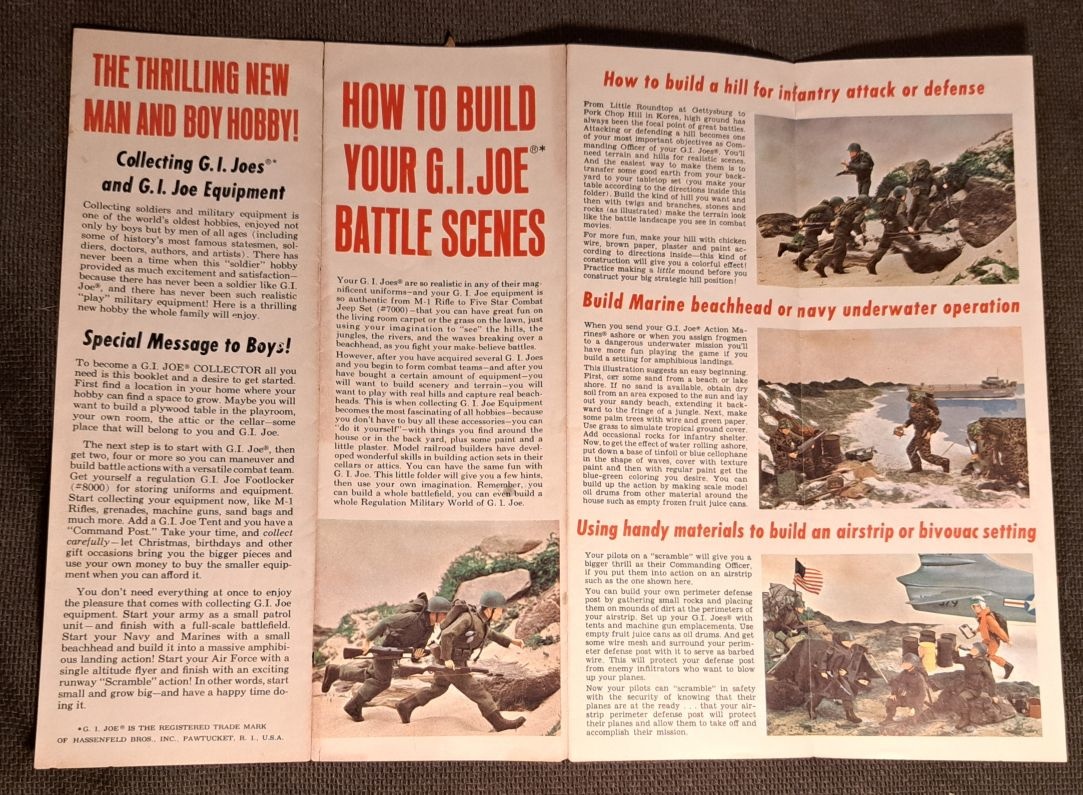 The second is "How to Build your GI Joe Battle Scenes". Actually it is G.I.Joe but I am too lazy to type it out that way. Anyway this would be fairly complex like building a train layout. It is easier to dig holes in the backyard but this would cool if one could do it. the backside shows how to make the shapes. I believe it is like paper-mache. You can also use sand or dirt. From the shape and lack of folds this would come with a boxed GI Joe.