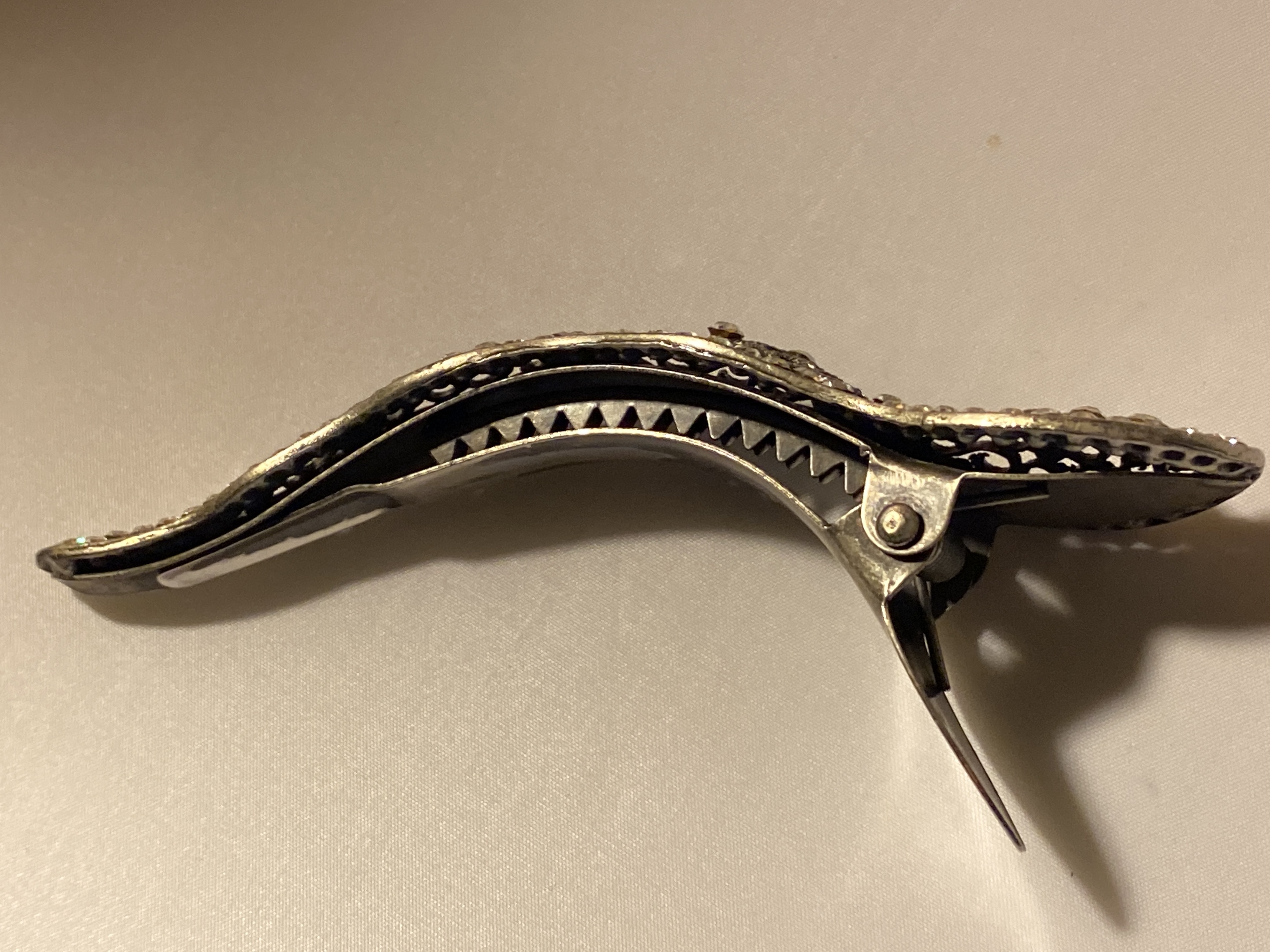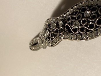 Hello I found this year’s ago it was totally black and I remember spending hours cleaning a lot of the tarnish off but gave up in the end, I never did find out how old it was. It’s very big like a statement item or maybe bridal? No idea except looks and feels like quality, no markings at all but wouldn’t be surprised if it was silver and should really check