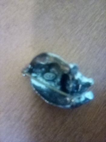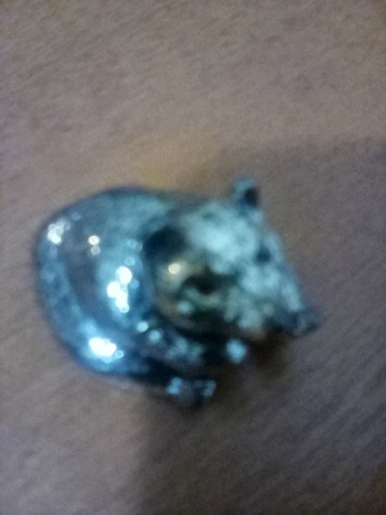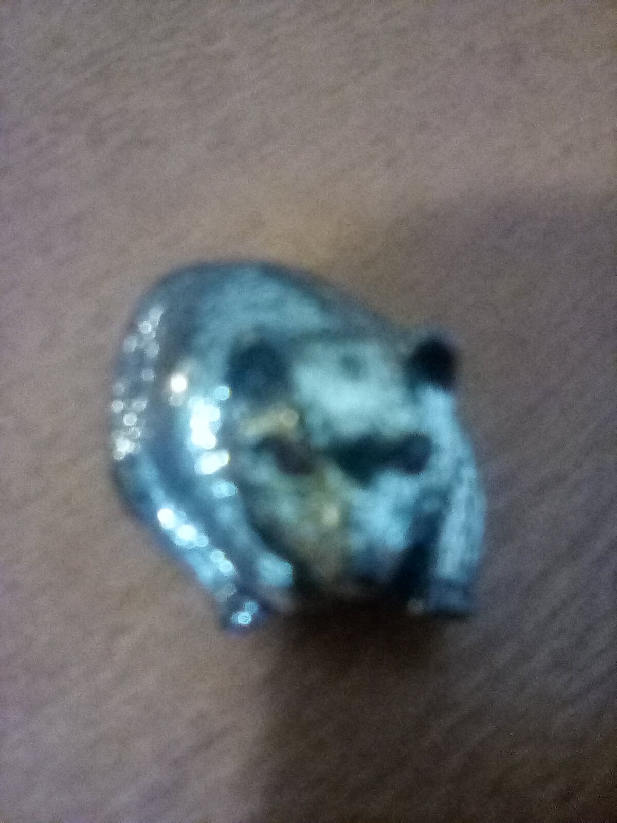 A tiny silver bear found in consignment shop. It has red eyes and round body, inside is very small printing Danecraft Sterling Silver