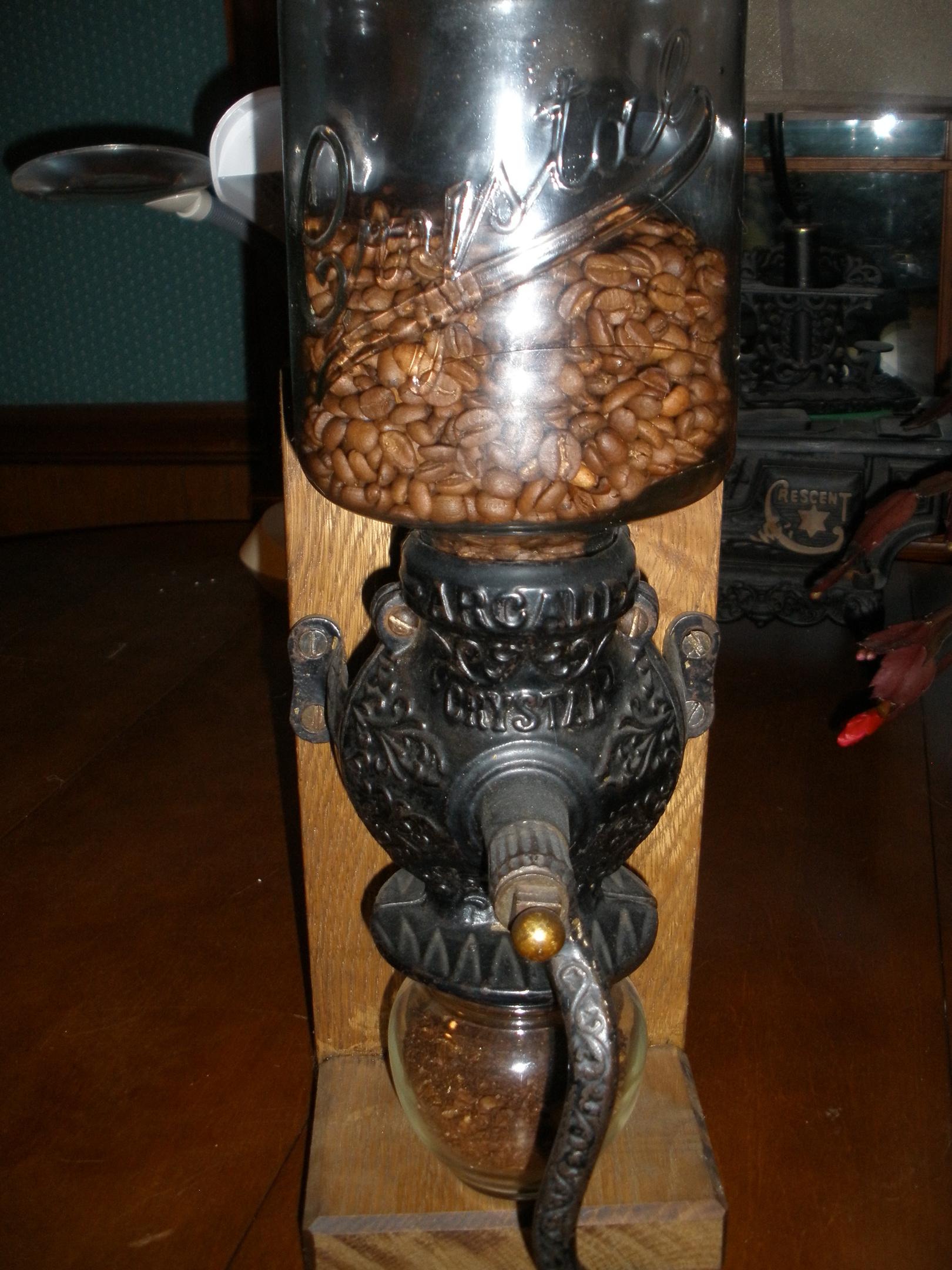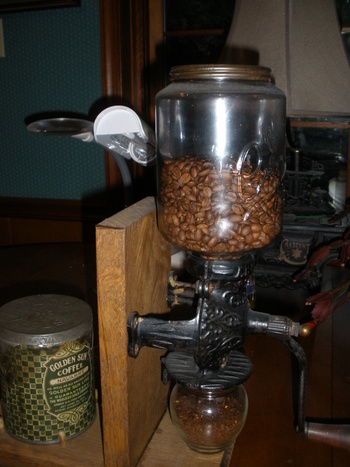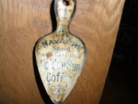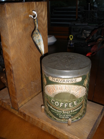 Also shown are a coffee can and a coffee scoop with the name "Navarre" on the can and on the scoop.