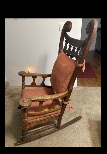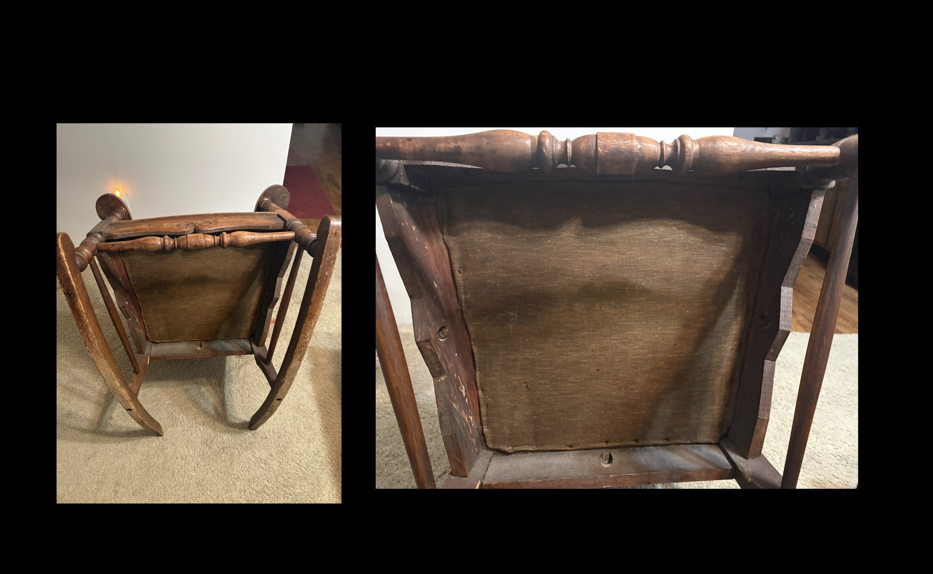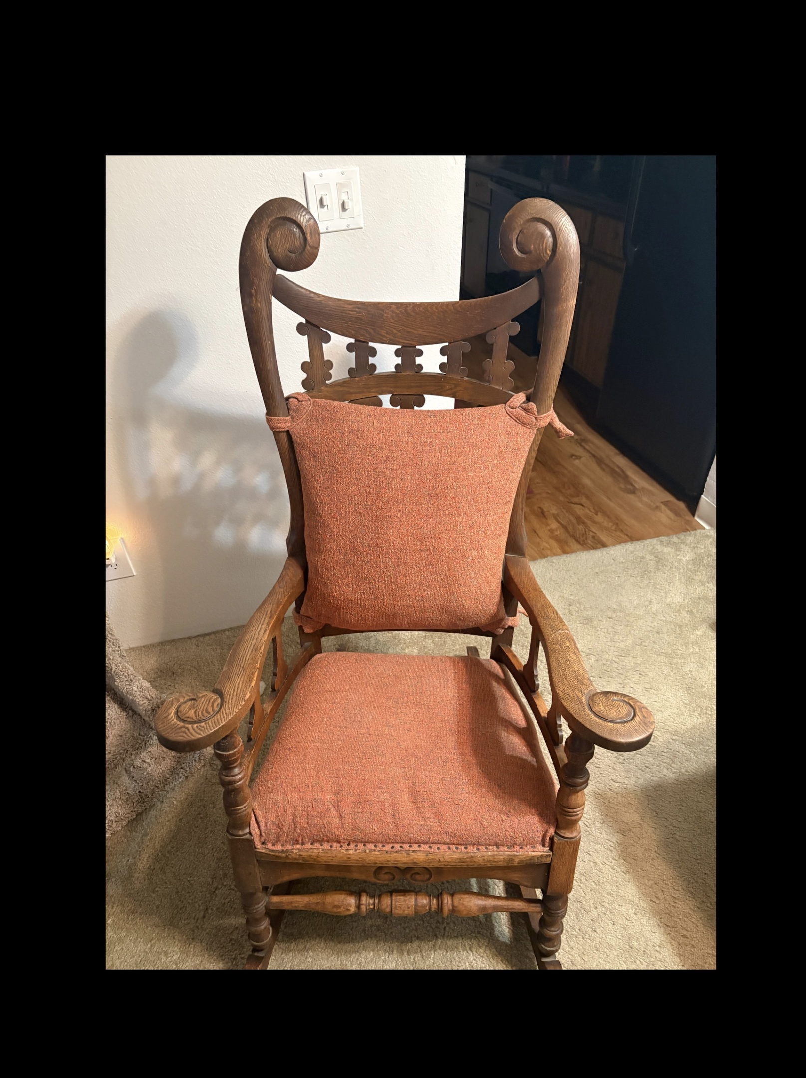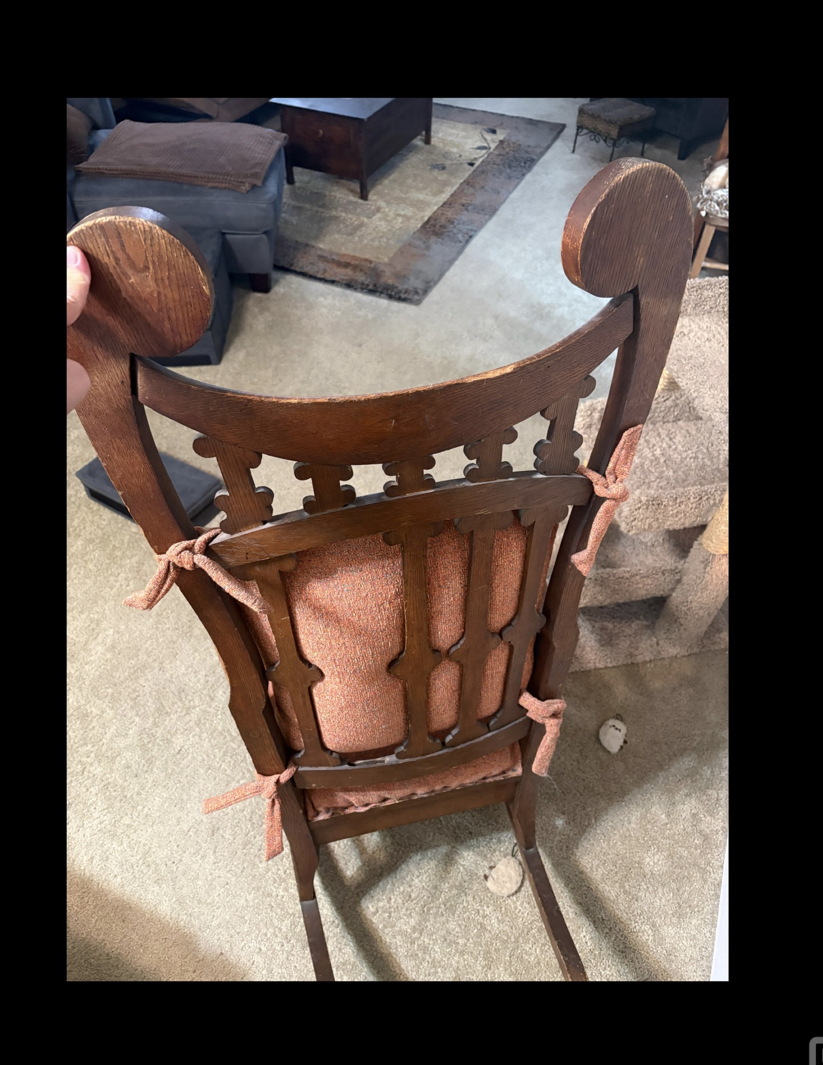 I’m trying to find out about this chair can anyone tell me anything!? I acquired it in 1986 in an abandoned storage. It is very well made, very solid heavy wood. The seat was tapestry and in very bad shape, so I fixed it myself with fabric and made a matching back cushion. I have been searching rocking chairs and have not found anything even close to this one. There’s no date or markings of any kind. The screws are large round metal. So I don’t think it’s that old. If any can help I truly would appreciate!! Thank you in advance
