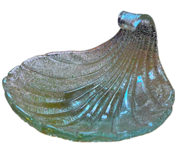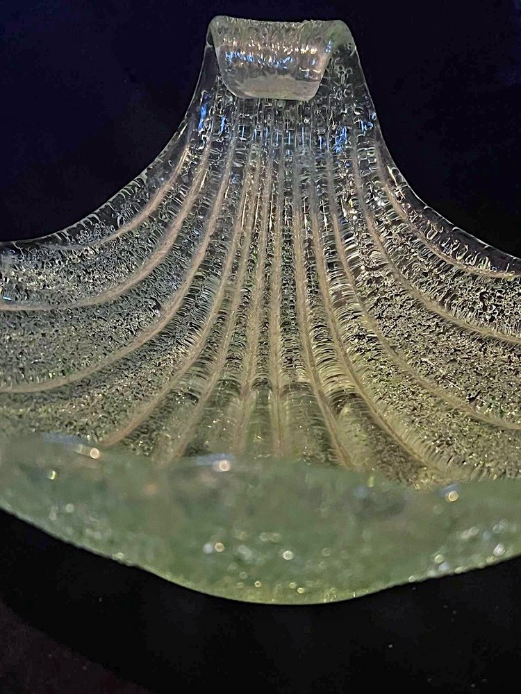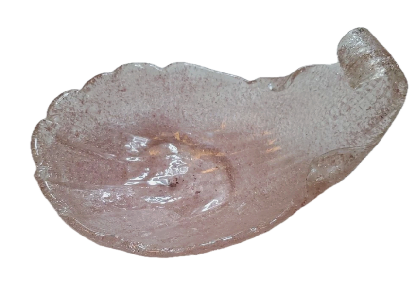 I don't know the exact makers of these 1960s Murano bowls. I have been told that these were produced Fratelli Toso. However, I was then told these was was another maker who made the same shaped pieces., and I forget the name. If any one knows who the other company was, please post below. The green piece is the largest at 10" x 8". The pink piece is much smaller in the 6" range.