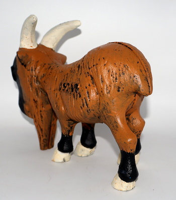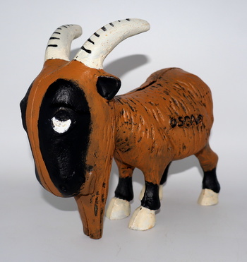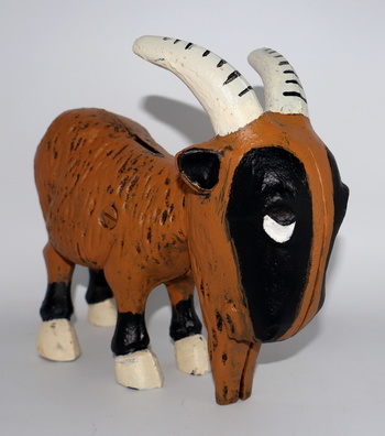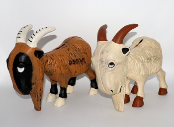 A few years ago I posted a cast iron "Oscar The Goat" still bank. Well, low and behold, I managed to add a second one to my collection. The originals are difficult to come by, so I bought this one as soon as I saw it. I've seen these in a few different color variations, but I think I like this variation best of all. Pic #4 shows both of my Oscar The Billy Goat still banks together.