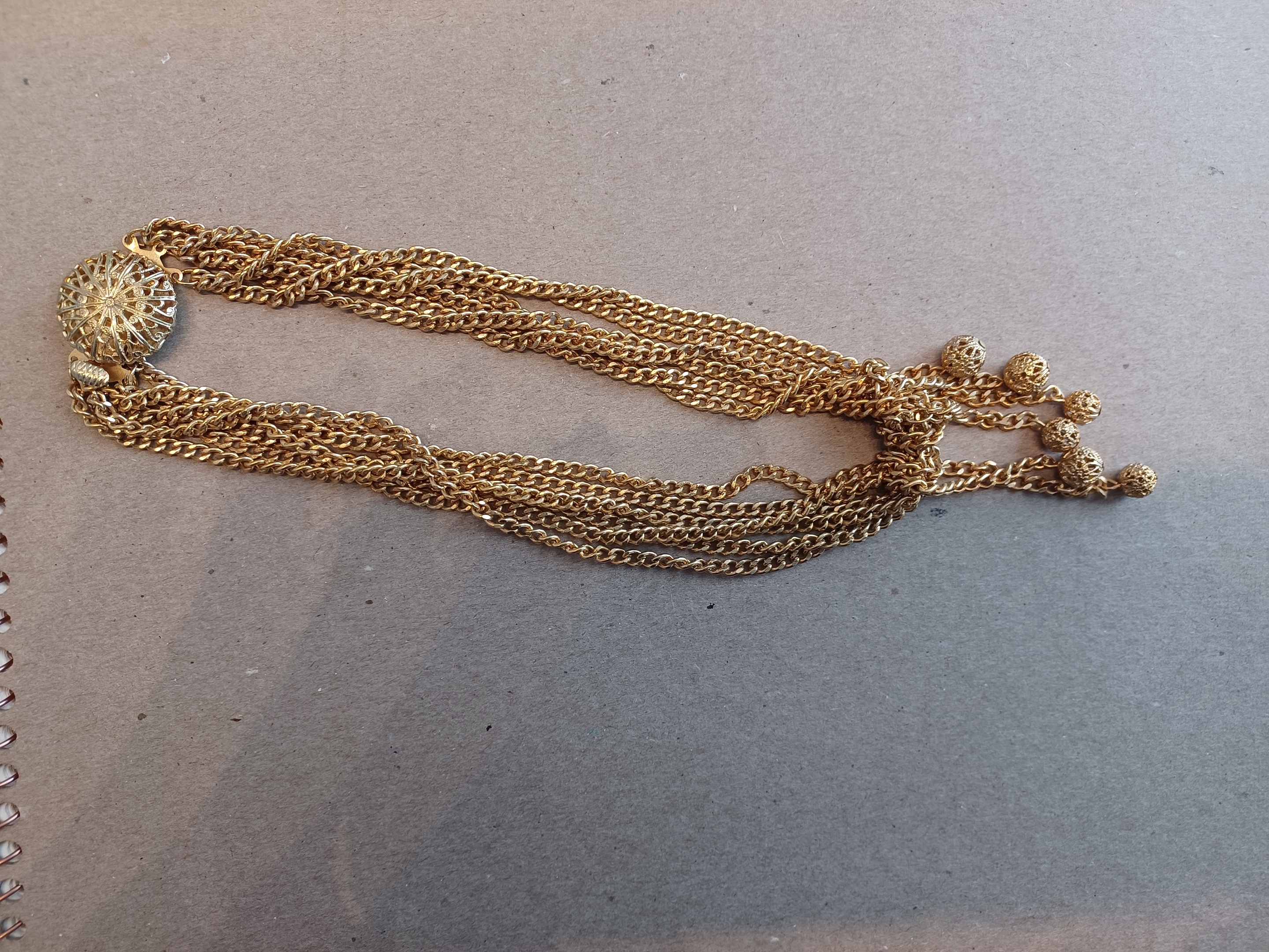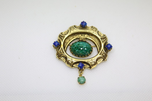 Very pretty jewelry group. If they're unsigned it's really hard to tell, but the golden chain does look Napier style