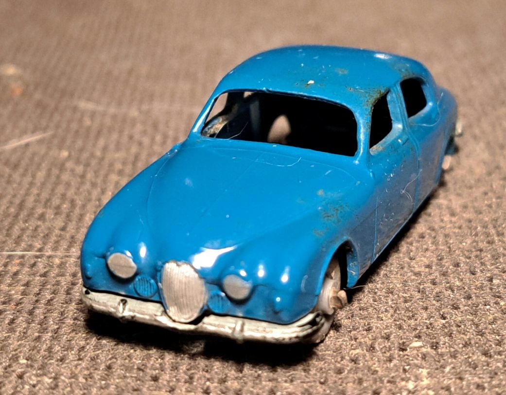 This is the3 first version of the Jaguar 3.4 litre. This version is very basic with no features, interior or windows. It was just a body and baseplate. The model was made from 1959 through 1961. The follow-up version had an opening hood with engine. Not much to note here so enjoy the photos.