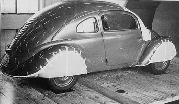 Here is the early car in the form of a Kager 1:43 scale die cast model. Picture 4 shows the real car complete with never actually used covered wheel arches
