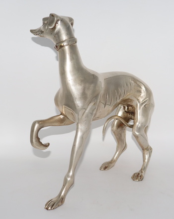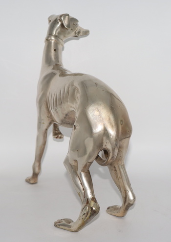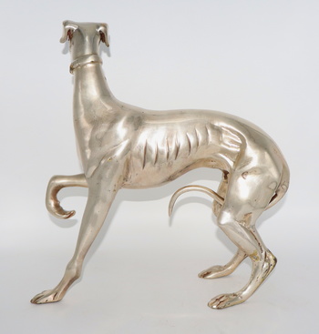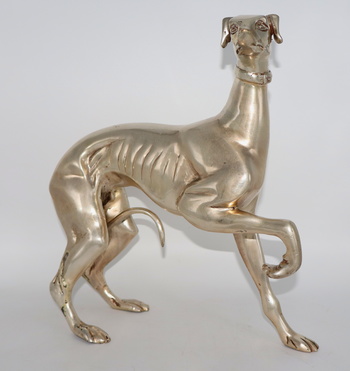 A new dog addition to my collection. This Whippet is made of silver plated bronze and dates back to the early 1900’s. It’s nicely detailed and quite heavy for its size. It only measures 12” tall and 12” long and weighs a bit over 6lbs.