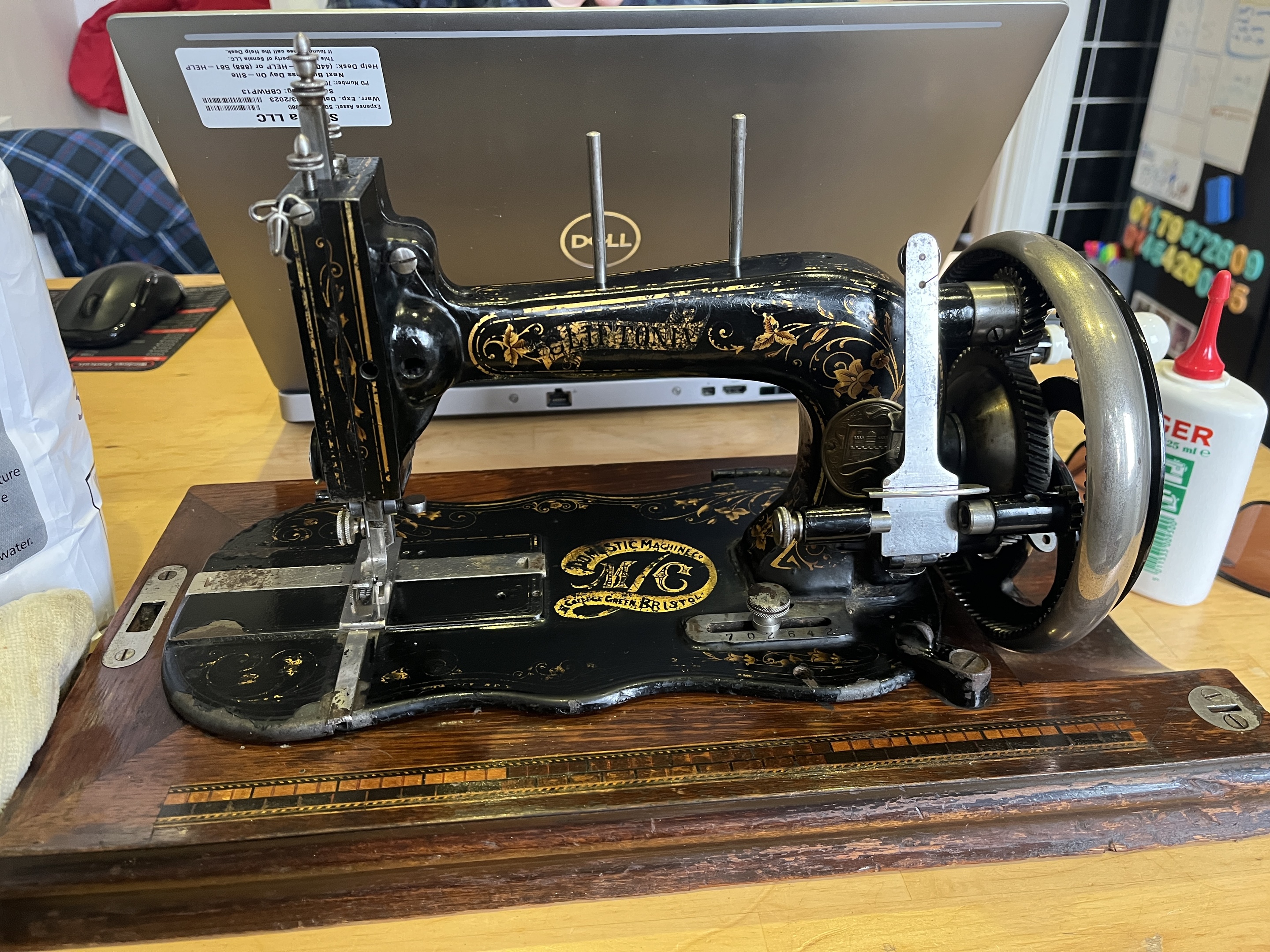 Also, the fiddle-shaped bed on your great great grandmother's sewing machine might suggest that it's fairly old, but not necessarily so, per Olaf at the victoriansweatshop forum: