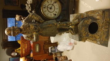 This one was in extreme lousy shape when I bought it, but I restored it to it original finish. It took 3 rounds of paint stripper, one round of oven cleaner to get the case back to it's original form, along with hours with a dental pick to clean crevices in the base. I even found a nightstick to replace the one that was missing. The clock movement in it is quartz, it is very unlikely that I will find a movement that will fit a 2.25" opening.