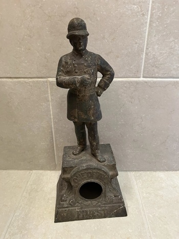 The policeman clock cost 600 trade cards, the cards depicted police and fire captains and eventually baseball players.