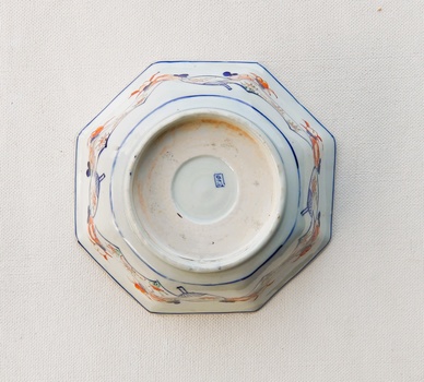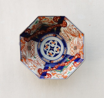 I bought this marked Japanese, imari, octagonal, porcelain bowl at an antiques shop for the equivalent of USD50. Probably Meiji period, late 19th century ? Height 9.0 cm. Diam. 22.5 cm. Lots and lots of this export porcelain has been made, but still decorative, I think. Maybe you can date the bowl more precisely ?