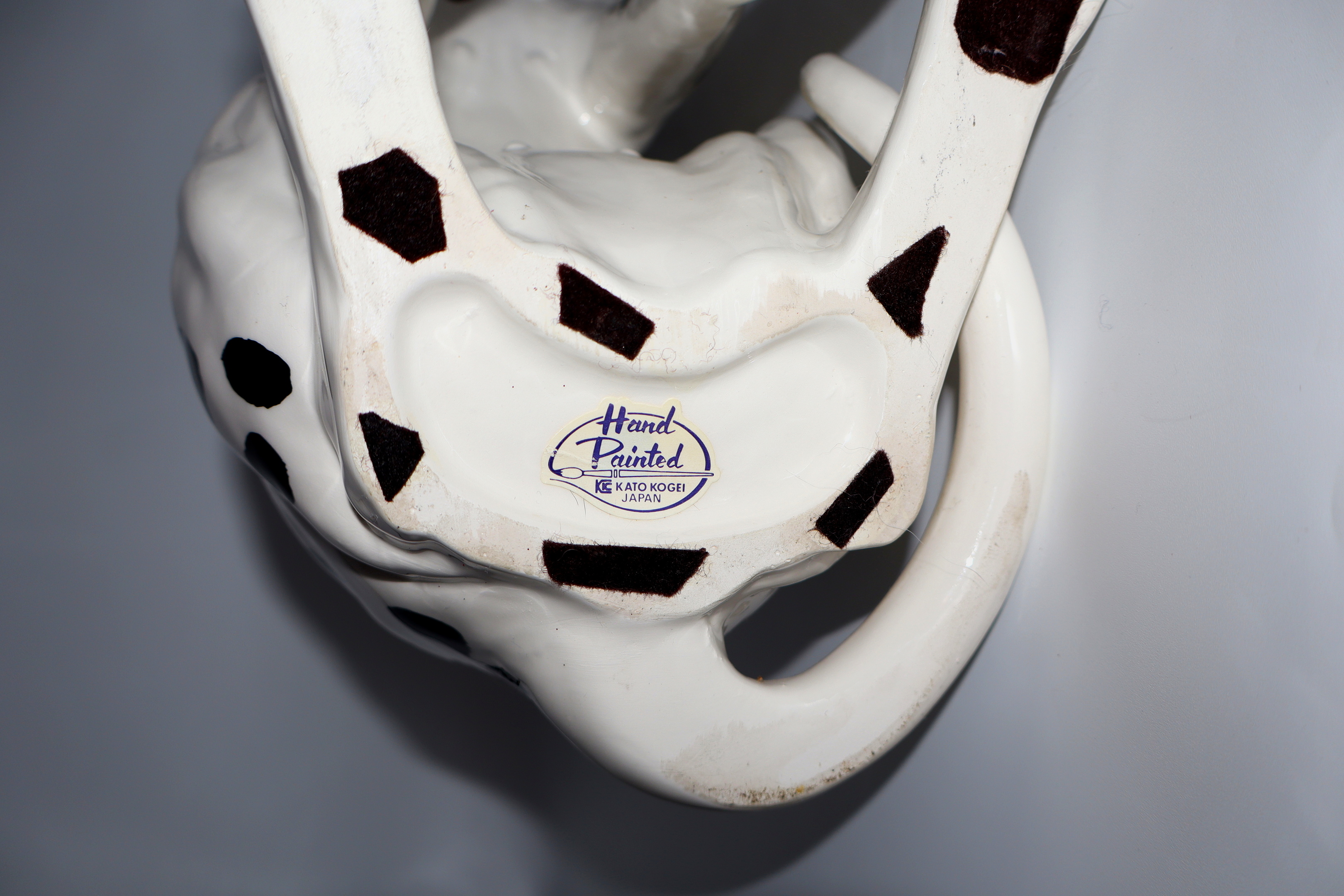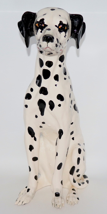 I recently found this wonderful Dalmatian figure and couldn't pass it by. It was made and hand painted by Kato Kogei Japan. The details of this Dalmatian are simply outstanding from his ears to his toenails. I believe this one was made in the early 1980's, so not really what I call vintage, more like retro. He stands 21" tall.