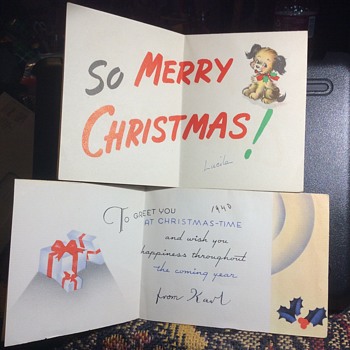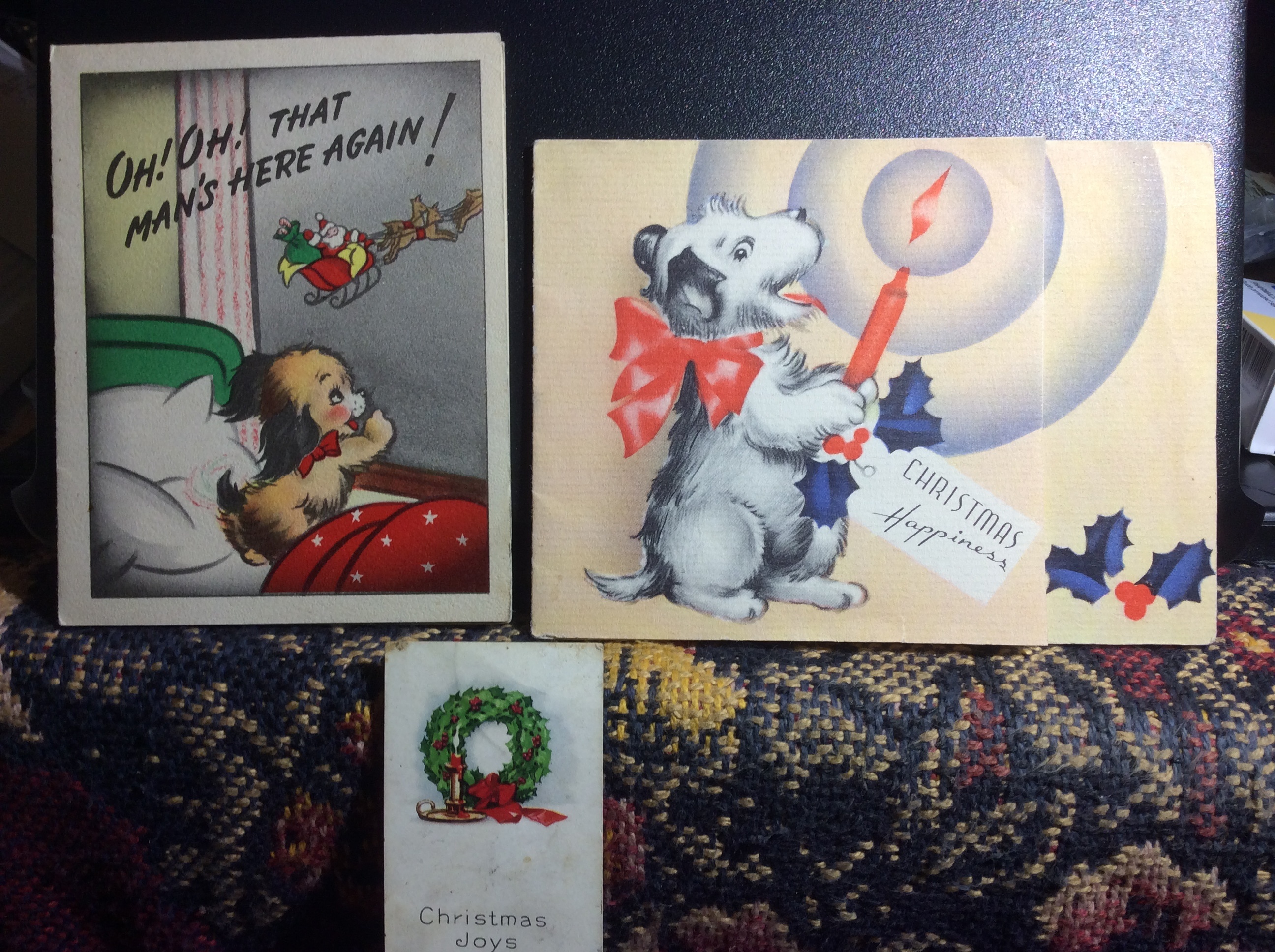 Three French hens ,two talking dogs in a pile of Christmas cards