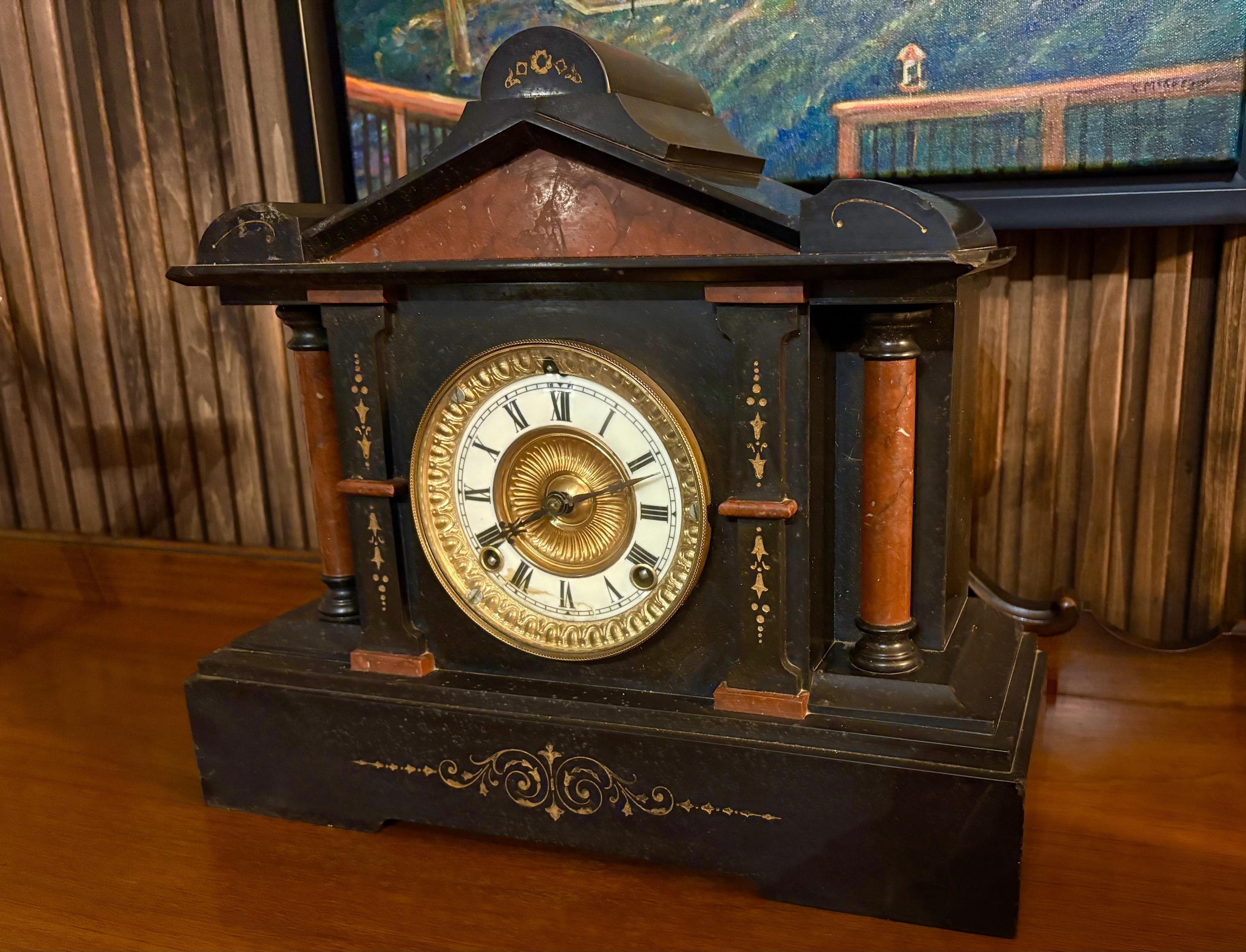 I recently purchased this clock, it’s all original and fully functional. All the information I have been able to gather is it’s an Ansonia Pat. 1882, model 3886, construction is black marble over what appears to be ceramic. I’m hoping someone has seen this clock before or can drill down on the information I have provided to narrow down the actual model name and approximate date of manufacture.
