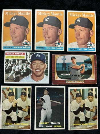 1955 Bowman with Mickey Mantle, Hank Aaron, Willie Mays (2), Berra