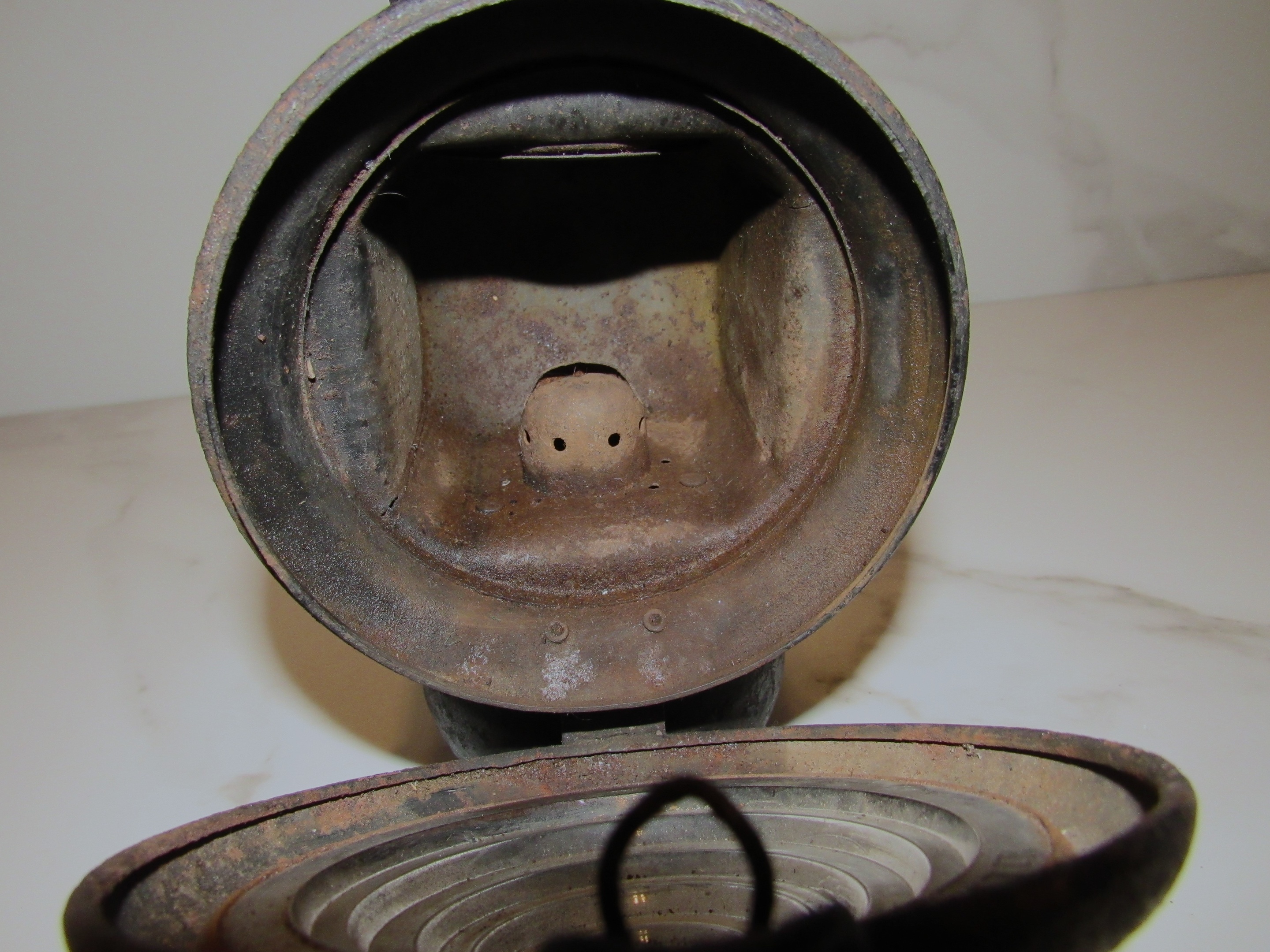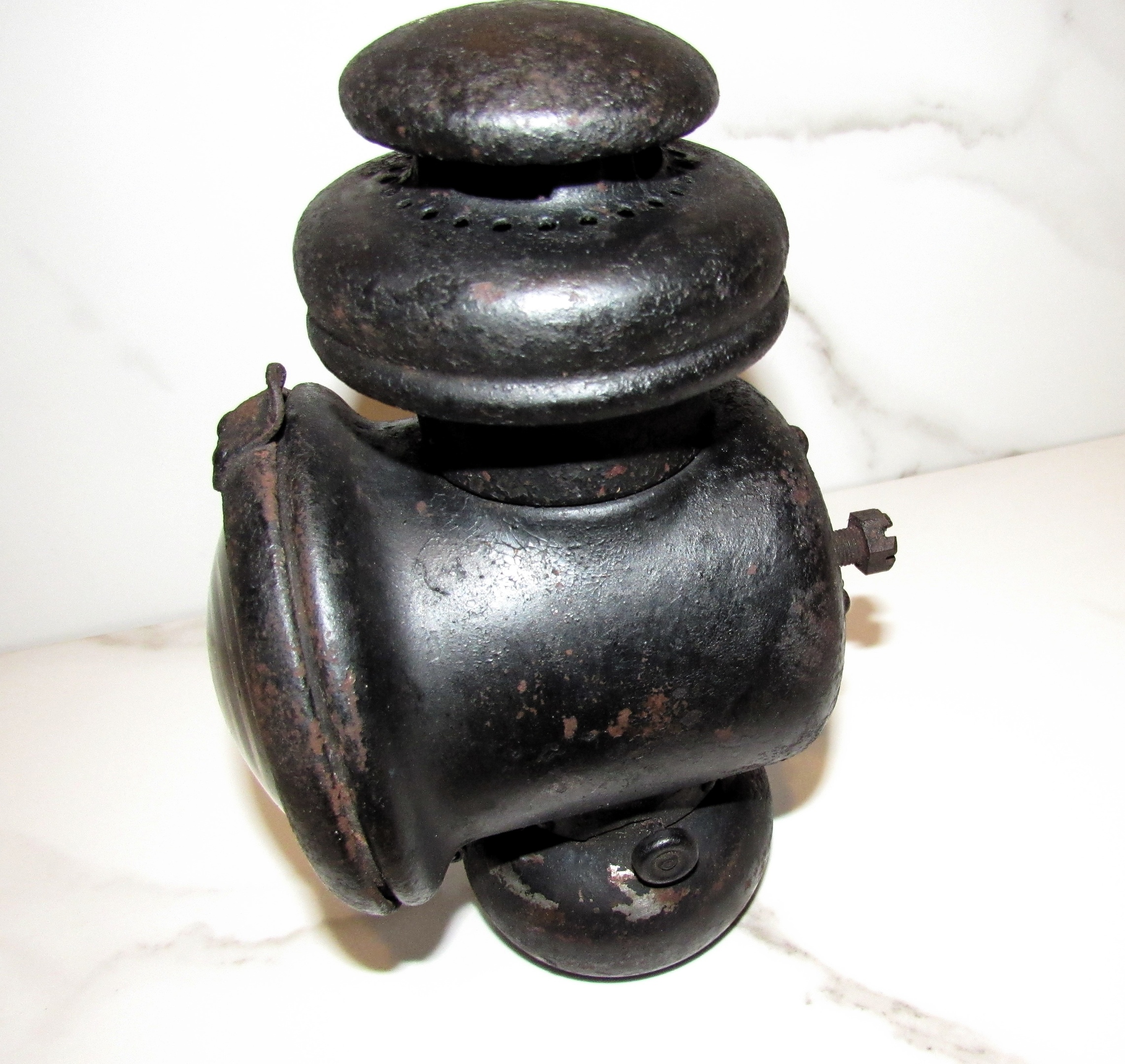 Antique U.S. Ship's Signal Oil Lamp With Mystery Mark; "Toru"?