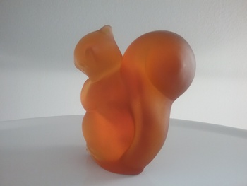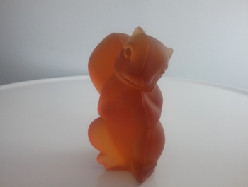 Beautiful amber glass squirrel, against the white background! Makes me think of the snow. Great photography!