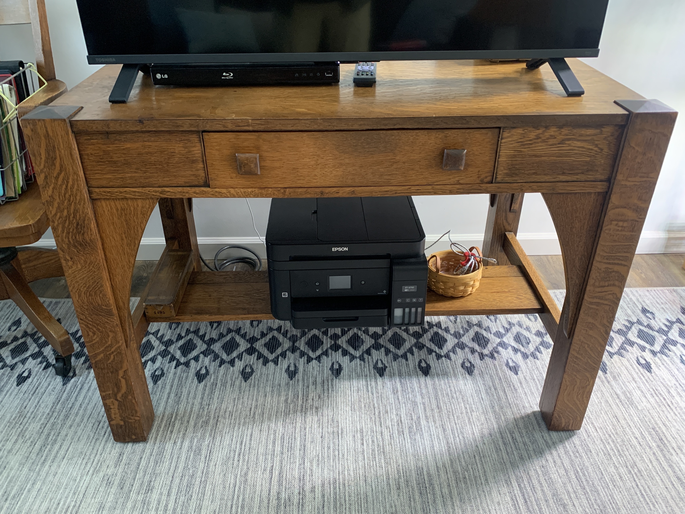 Library table purchased for $50 in PA. Beautiful condition. Any ideas of the maker? I couldn’t find any marks.