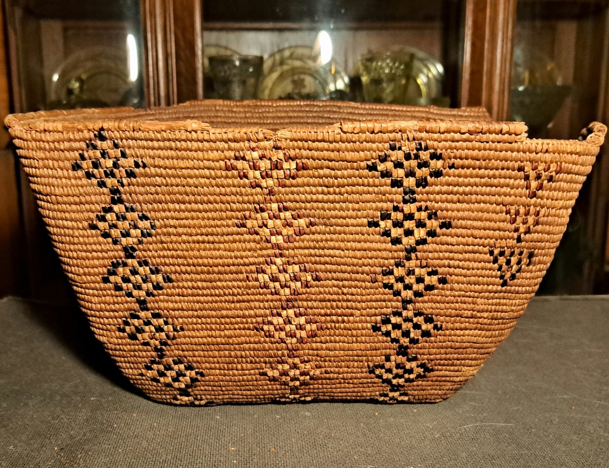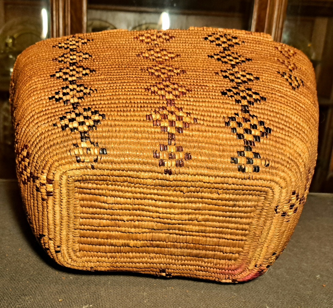 Are you sure it is Indian? Looks very much like a Thompson River Salish Basket but I could be wrong.